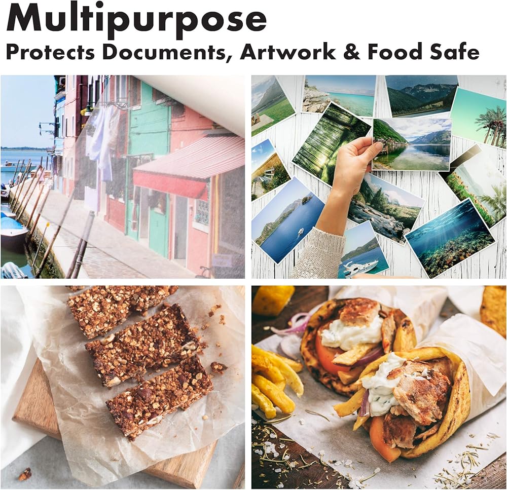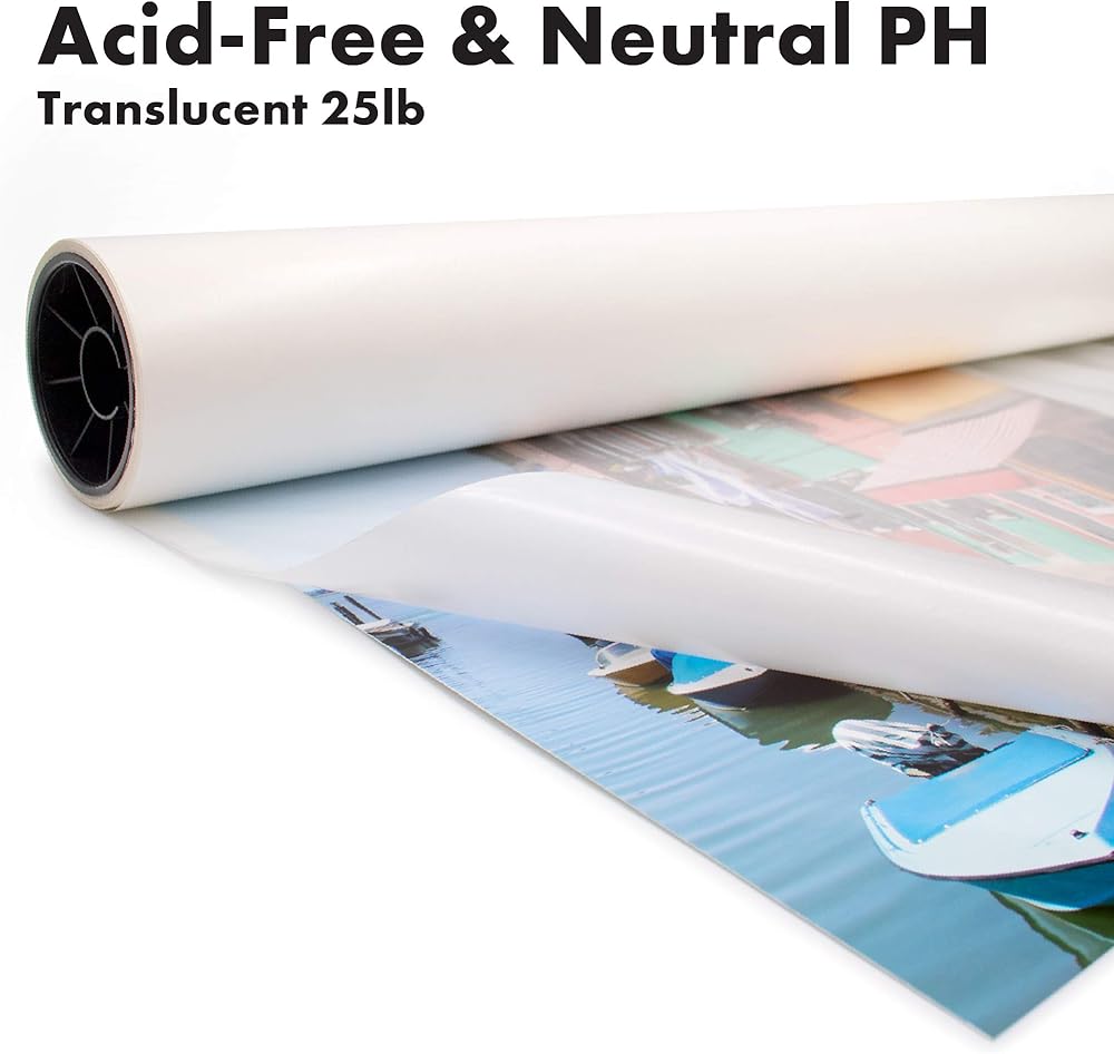 • ACID-FREE: 25 lb neutral PH glassine paper that is great for protecting documents, drawings, photographs, and negatives against dust and abrasion.