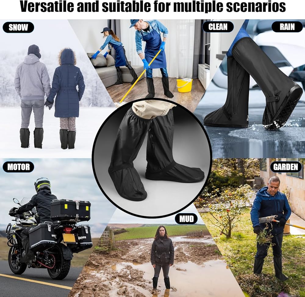 Easy to Wear:The waterproof shoe cover is designed with a robust side zipper and buckle double locking design to ensure easy and quick wear and effectively prevent slipping.
