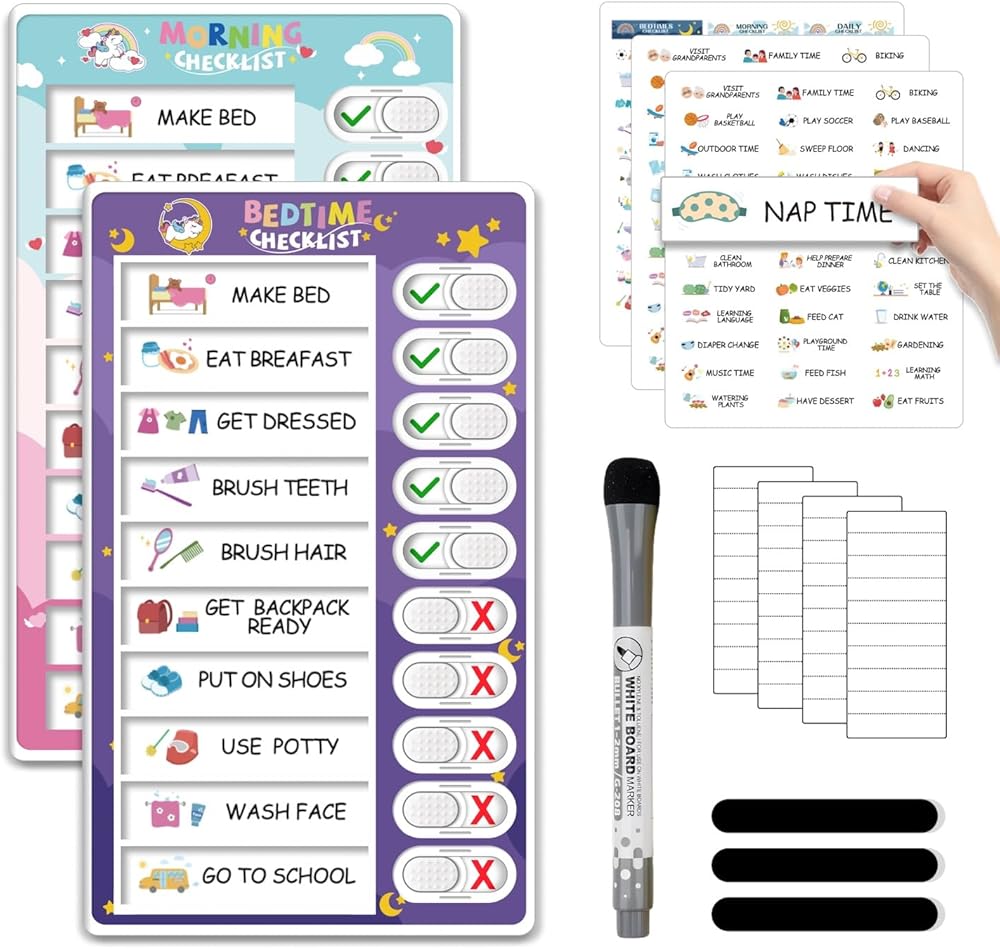 مخطط روتيني محدث 2 في 1 للصباح/وقت النوم للأطفال في عام 2024 - المزلقات سهلة الانزلاق تجعل الأمر بسيطًا على الأيدي الصغيرة، كما توفر المادة السميكة شعورًا ممتازًا. يضيف التصميم المنزلق للمهام من الأعلى إلى الأسفل الراحة، ويساعد الأطفال على البقاء على المسار الصحيح في روتينهم اليومي. يجب أن يكون للعائلات المشغولة!