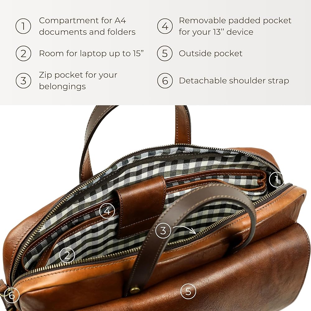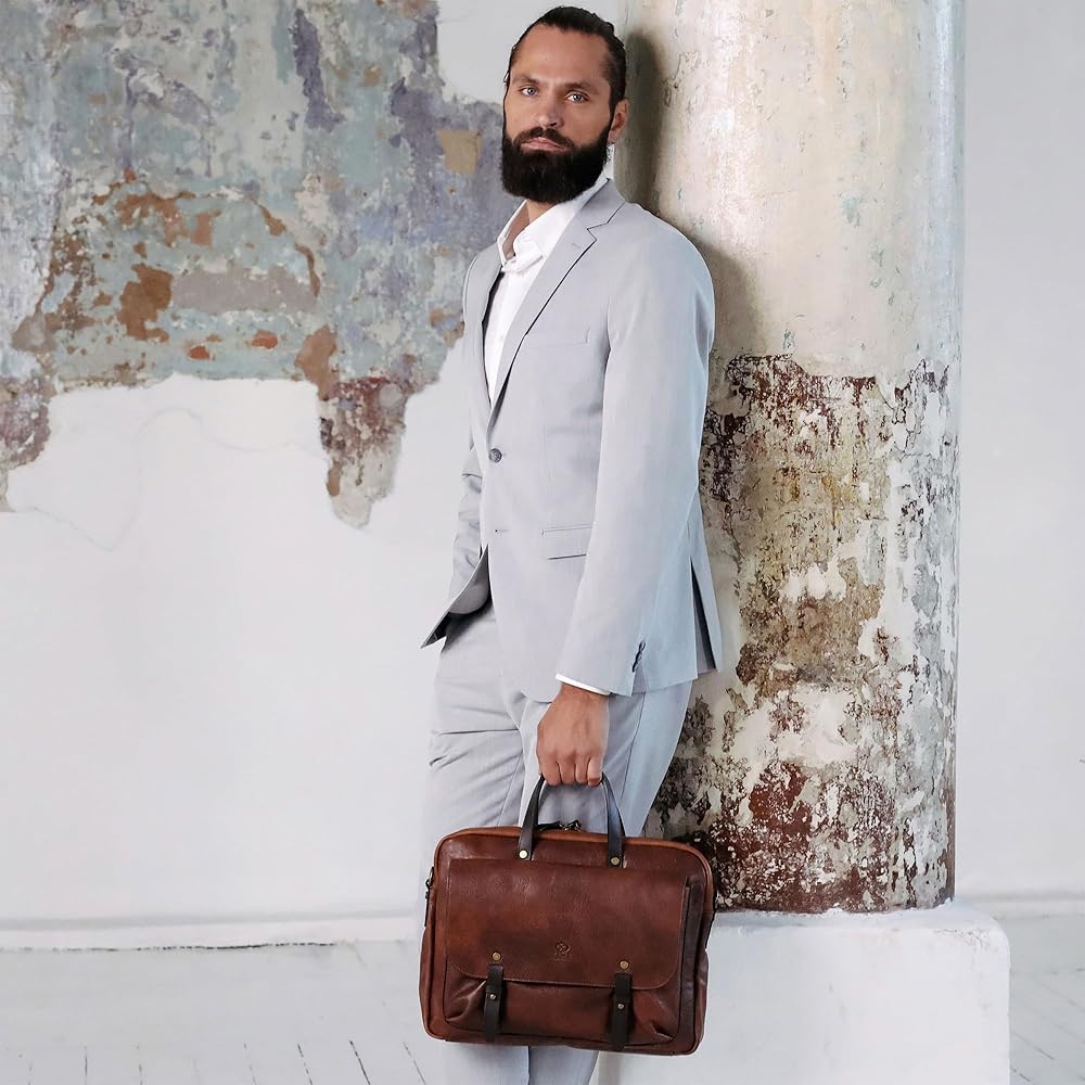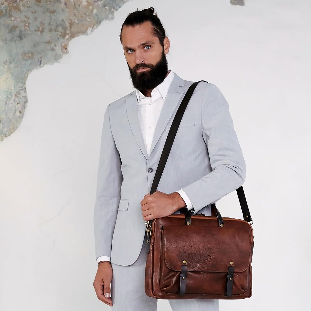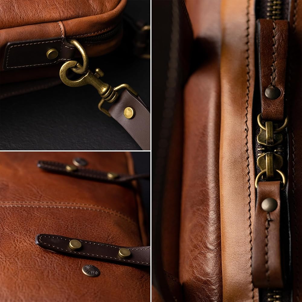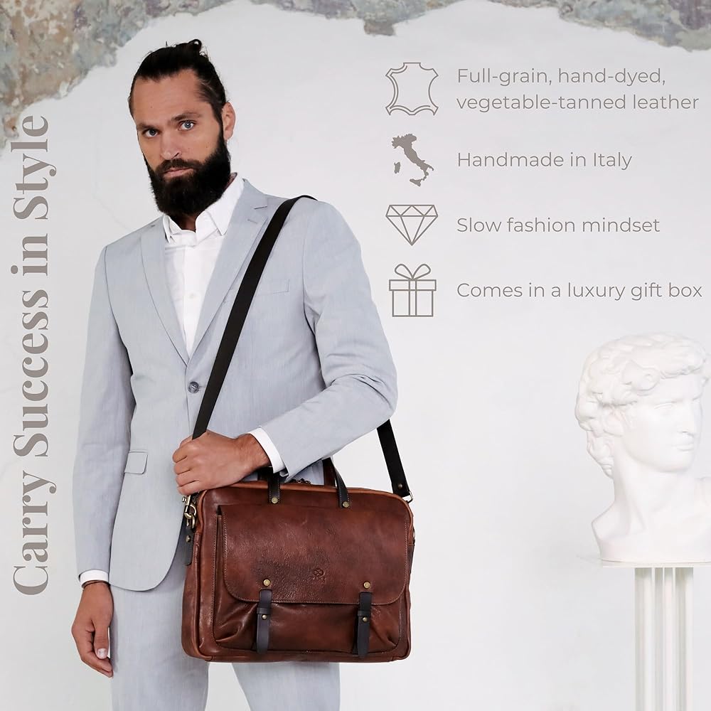 ✔️صنعت لتدوم طويلاً - الحقيبة الجلدية مصنوعة يدويًا في إيطاليا باستخدام أسرار الصناعة اليدوية التي تتوارثها الأجيال. أجزاء صلبة موثوقة، وبطانة مقاومة للتمزق، وسحابات YKK - التفاني والاهتمام بالتفاصيل هي ما يضمن مظهرًا رائعًا للإكسسوارات الجلدية عالية الجودة.