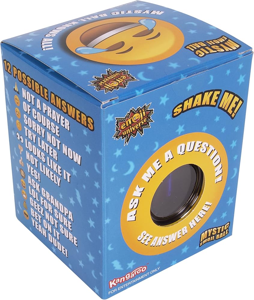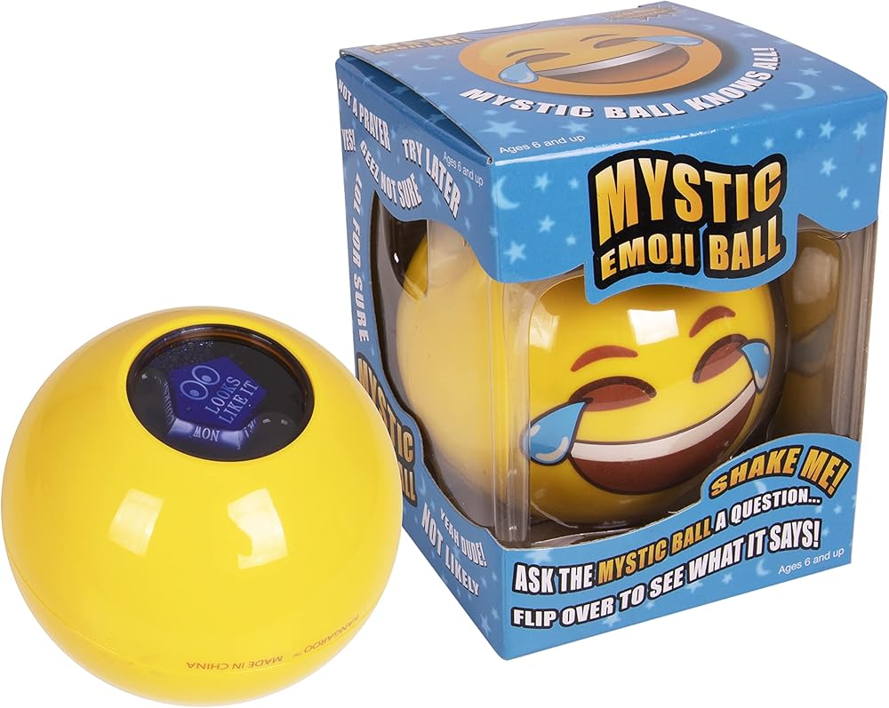 Embark on a whimsical journey this holiday season with the Kangaroo Mystic Emoji Ball, the enchanting stocking stuffer that brings the magic of fortune-telling to life for kids. Unveil the mysteries of the future with a simple shake, a turn, and the revelation of your fortune through the window. This delightful toy combines the allure of traditional magic with contemporary communication, offering answers in words, text slang, and emojis, ensuring each response is a delightful surprise. Picture the excitement as children ask the ball their burning yes or no questions, turning the toy upside-down in anticipation of the whimsical and often humorous replies that appear. The Kangaroo Mystic Emoji Ball transcends the boundaries of ordinary toys; it's a game, a mystery, and a source of endless family fun. Crafted to be the perfect stocking stuffer, this magical shaker ball is compact and portable, making it an ideal addition to the festive surprises awaiting discovery on Christmas morning. The versatility of the Kangaroo Mystic Emoji Ball extends beyond the holiday season, offering endless entertainment as a game for family and friends throughout the year. Its compact size makes it the perfect travel companion for vacations and road trips, ensuring that the magic can be shared wherever the season takes you. In addition to the festive surprises awaiting discovery on Christmas morning. Not just a toy, the Kangaroo Mystic Emoji Ball introduces an element of educational play. Beyond the laughter and anticipation, kids can engage in a question game that encourages critical thinking and decision-making skills. This dual-purpose feature ensures that the Kangaroo Mystic Emoji Ball not only entertains but also enriches the minds of young players. Embrace the magic, share the laughter, and let the Kangaroo Mystic Emoji Ball add a touch of enchantment to the holiday season and surely create cherished memories and become a timeless favorite among kids and families.