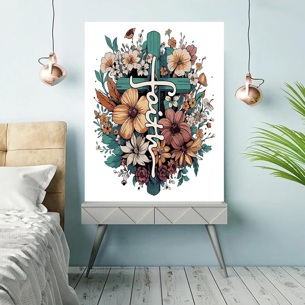 The Cross Flower Paint by Numbers Kit for Adults Beginner
