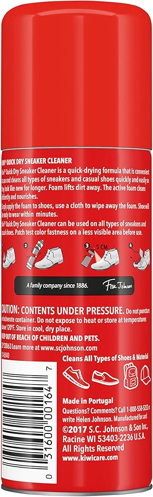 KIWI Quick Dry Sneaker Cleaner is a quick-drying shoe cleaner that is convenient to use. The Quick Dry formula cleans all types of sneakers and casual shoes. The foam lifts away dirt, cleaning efficiently while nourishing. Make your shoes look like new again.