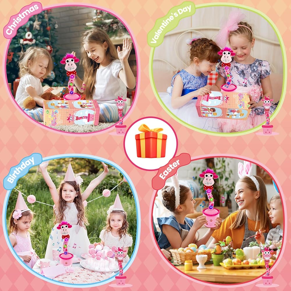 تصميم زرافة مرح وحصري: الزرافة الناطقة الراقصة من Ayeboovi هي نسخة مطورة من لعبة الصبار الناطقة الراقصة، وتتميز بتصميم حصري مسلي ومحبوب. إنها ترقص وتغني وتكرر ما تقوله بصوت مرح، مما يجذب انتباه طفلك ويعزز مهاراته الإدراكية والتحدث. مثالية للأطفال الصغار والأطفال الصغار، هذه اللعبة تعزز نمو الدماغ وتشجع التفاعل والضحك.