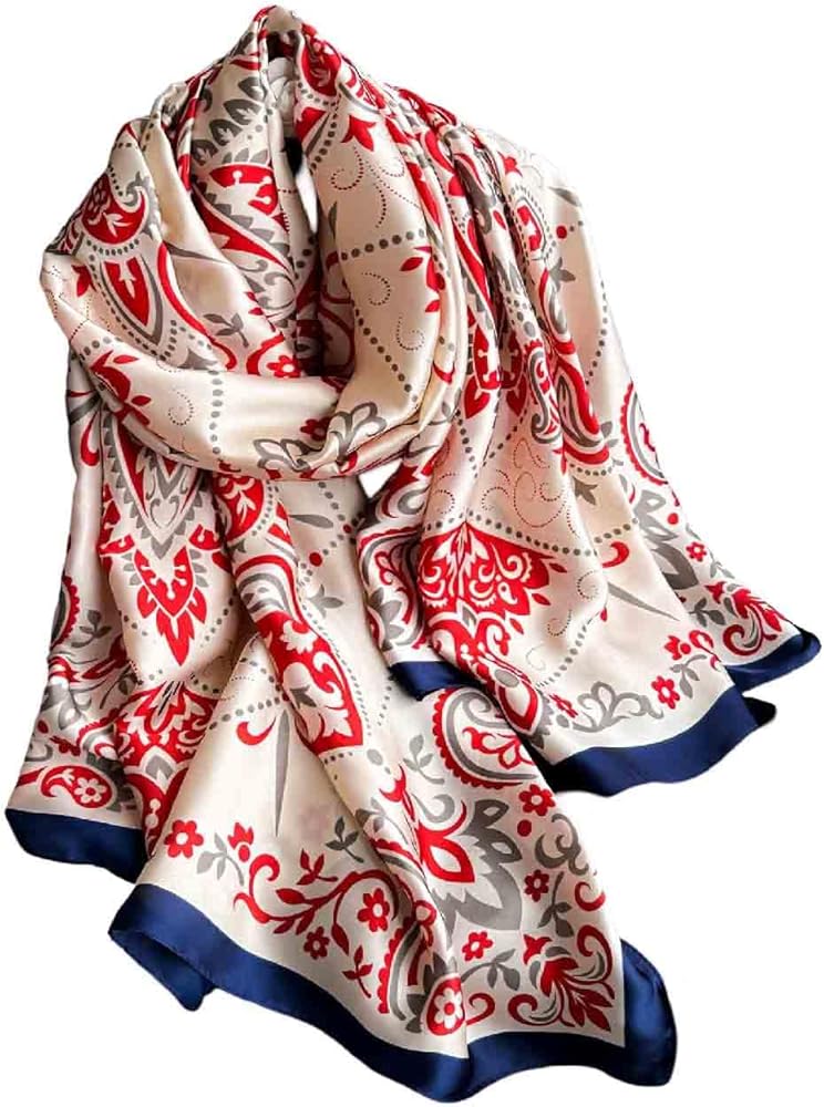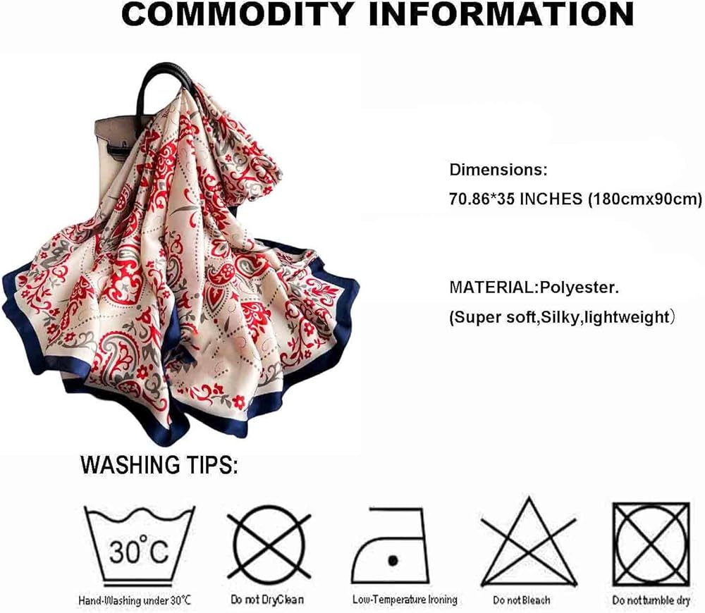A:This scarf is made of polyester,silk feeling scarf,soft and comfortable to wear, durable and lightweight,