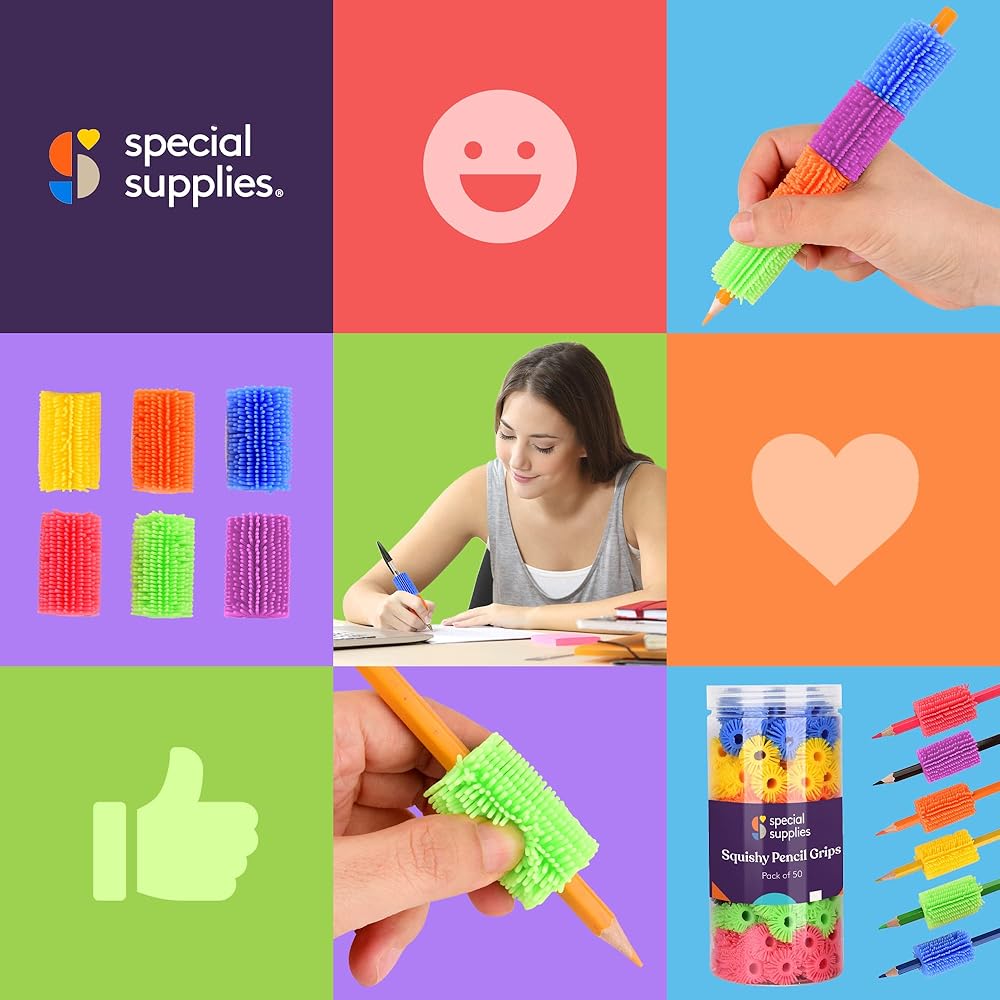 Keep yourself or your child focused and stimulated when writing or drawing with these soft, flexible, squishy pencil grips from Special Supplies.