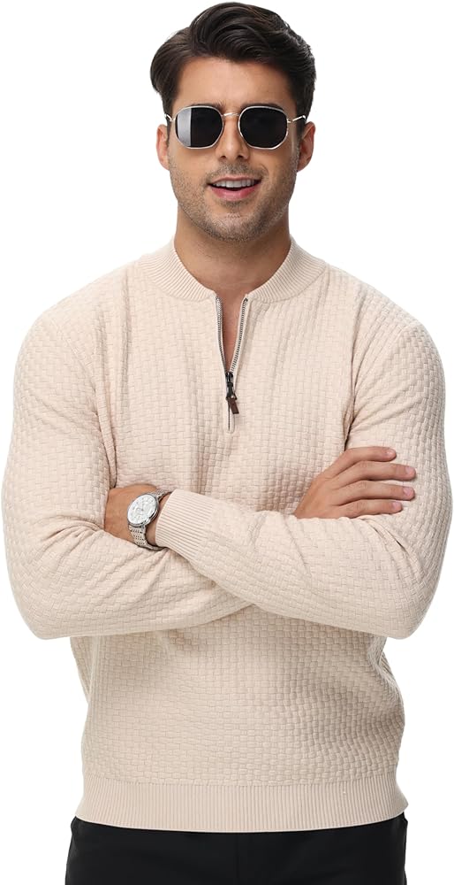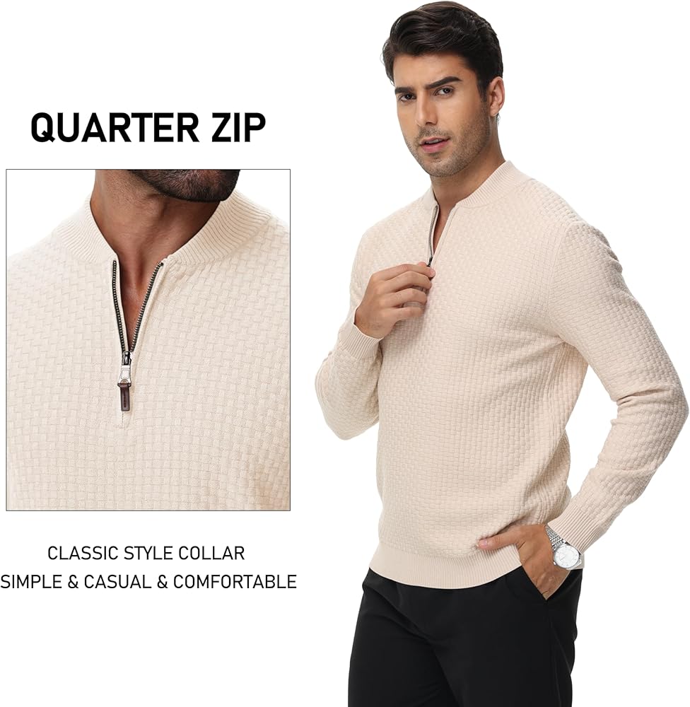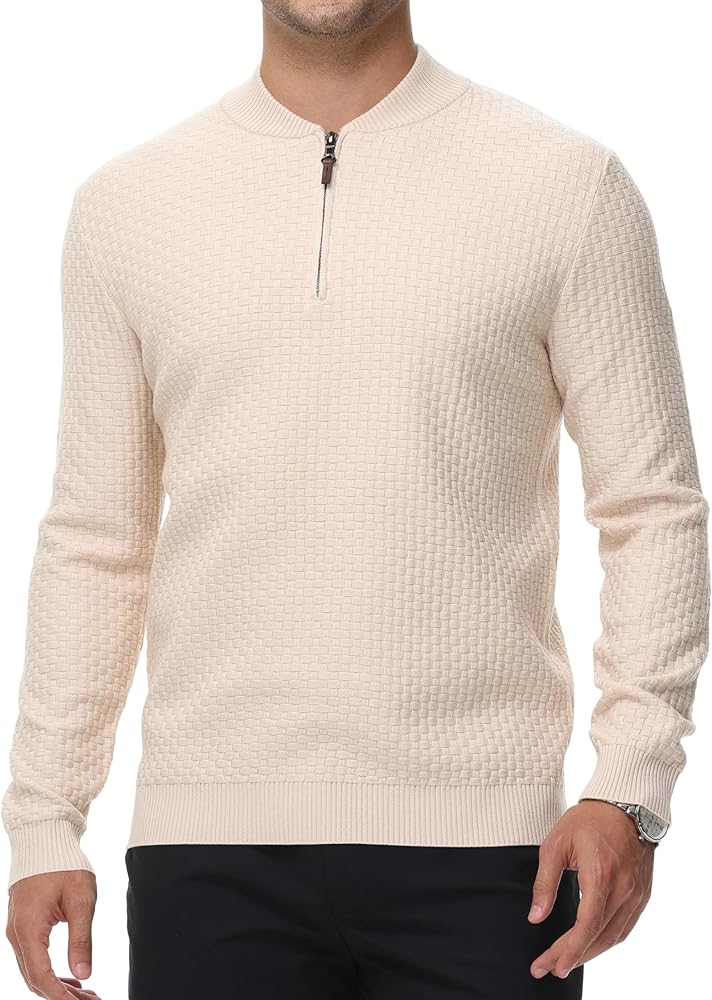 نسيج فاخر: هذه السترات الرجالية بسحاب ربع مصنوعة من نسيج عالي الجودة. مريح، دافئ، متين، قابل للتمدد، ملمس ناعم للغاية وملمس فريد من نوعه. بلوفر يجب اقتناؤه لشتاء 2024، مما يجعلك تشعرين بالدفء والراحة طوال اليوم.