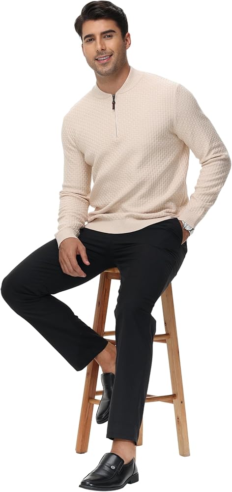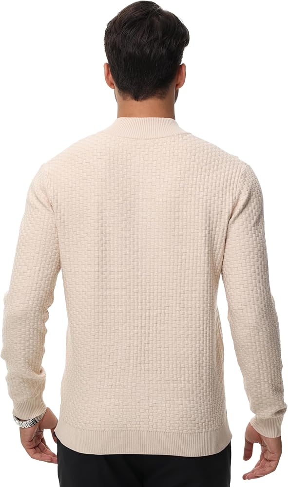 تصميم كلاسيكي: سترة رجالية بسحاب تأتي مع سحاب إغلاق كلاسيكي، وأكمام طويلة، وأساور أكمام وحاشية مضلعة، ولون ثابت، وتصميم محبوك عصري. هناك مزيج جميل من الأناقة والراحة، مما يجعله خيارًا موثوقًا وعصريًا.