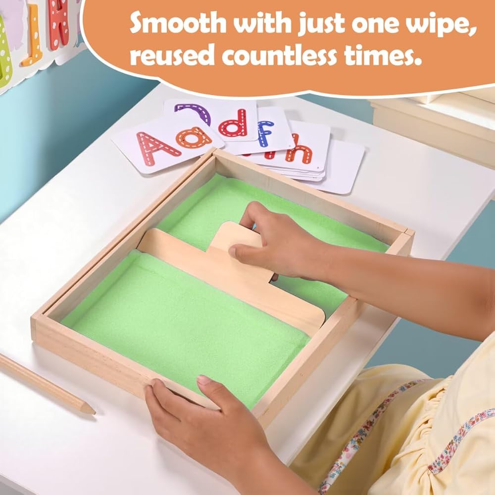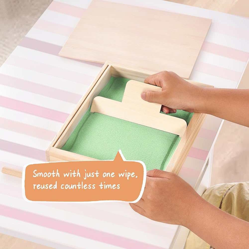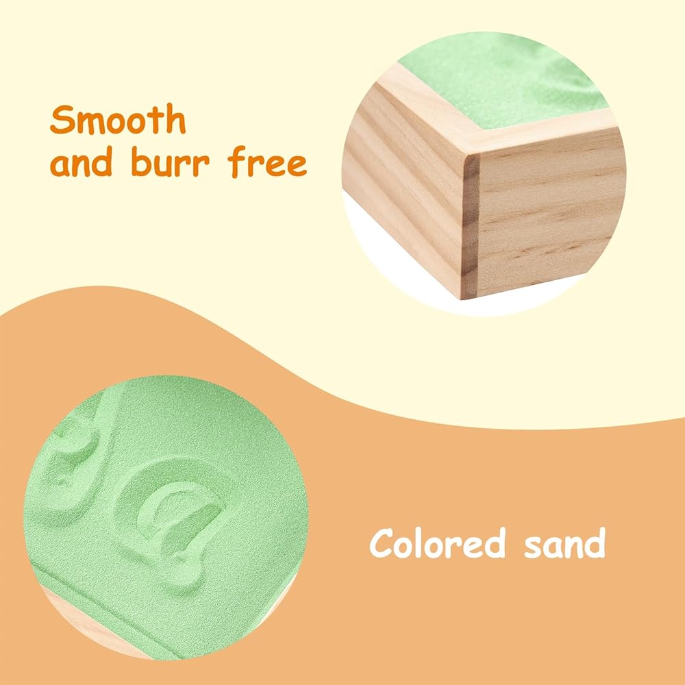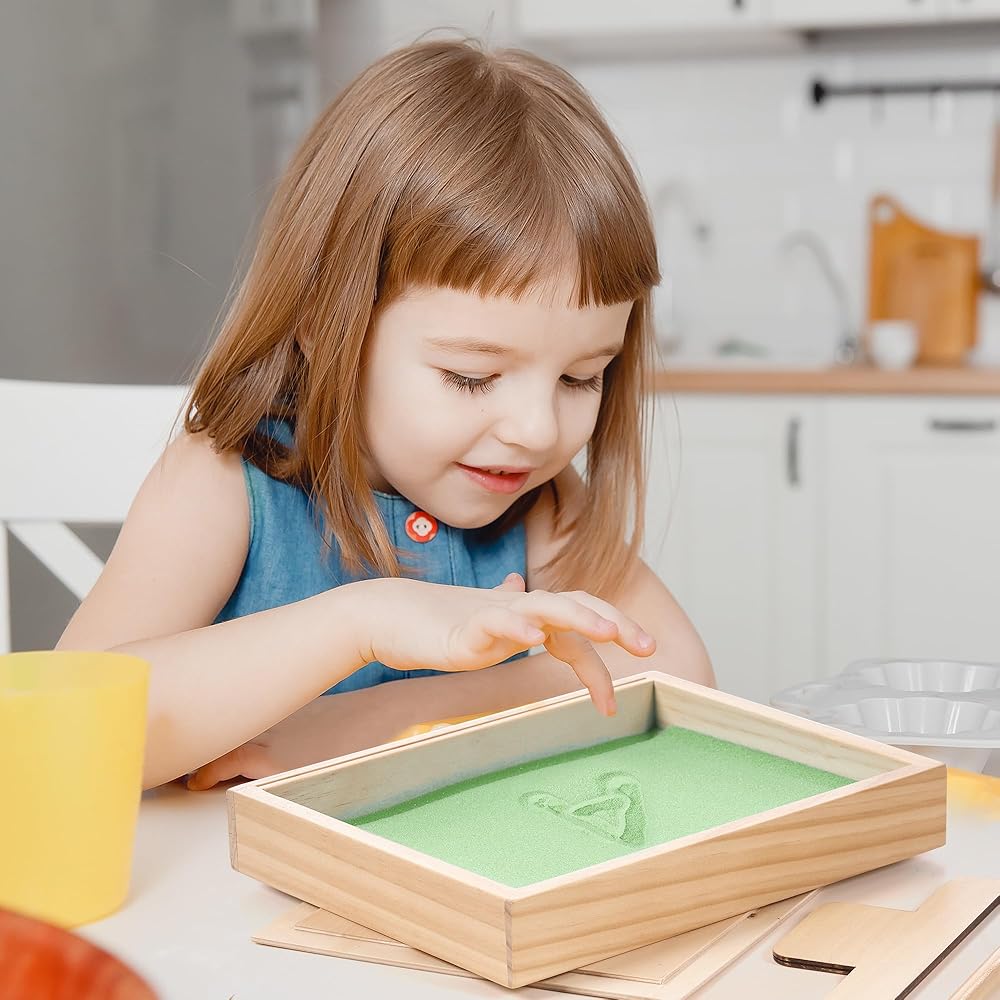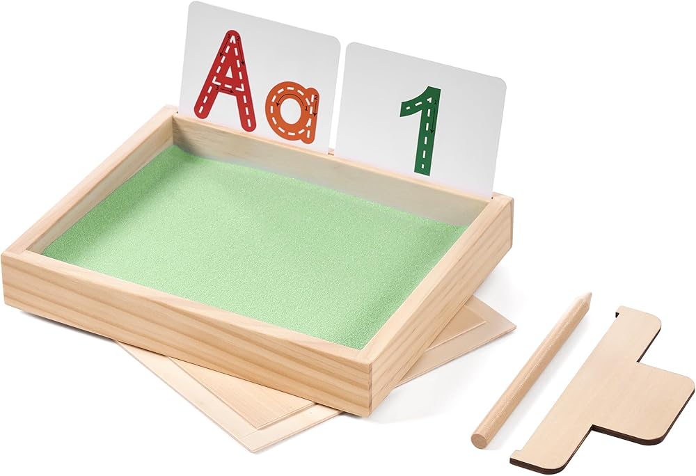 ممارسة الكتابة المبكرة - يمكن للطفل تحريك الرمل بأصابعه أثناء ممارسة حروفه، مما يوفر ممارسة الكتابة اليدوية باللمس، على عكس أقلام الرصاص العادية، هناك طريقة لمسية وممتعة غنية للكتابة على الرمل، وتستخدم لتدريب عضلات اليد وتشكيل الذكريات حتى يتقنون بنية الحروف الصحيحة