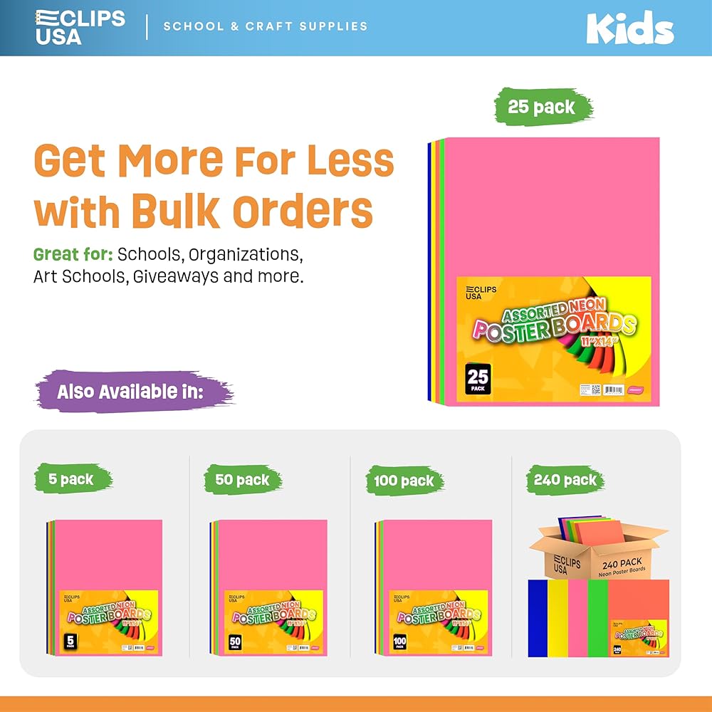 • BRIGHT FUN ASSORTED NEON COLORS- Large poster boards come in assorted vibrant colors to fit all your crafty needs. Comes in green, orange, blue, yellow, red, and green.