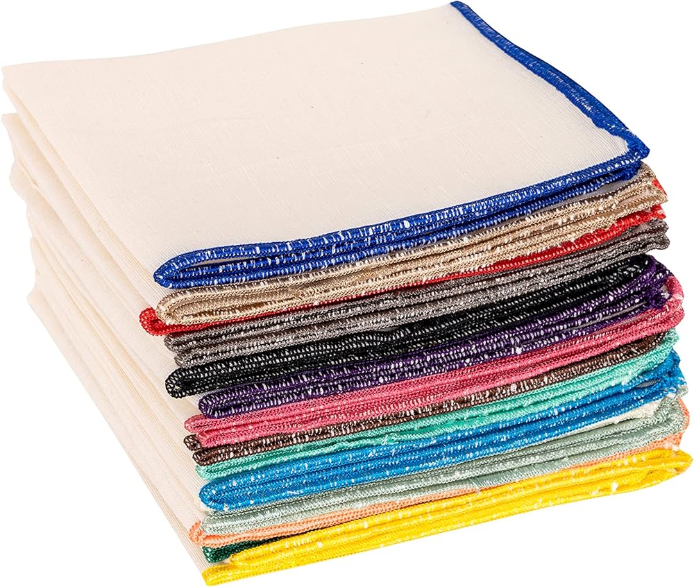 مربع جيب قطني HB مقاس كل منها تقريبًا. 24 × 24 سم / 9.5 × 9.5 بوصة (طول عرض)، مقاس مناسب لأي مناسبة. عبوة من 4 قطع بأنواع مختلفة من الألوان الكلاسيكية (أسود، رمادي، عاجي، كريمي).