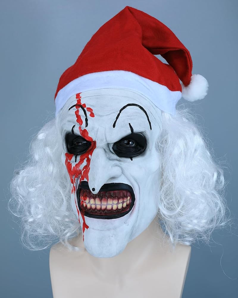 Authentic Design: Immerse yourself in horror with the Terrifier Mask, crafted to replicate the chilling look of Art the Clown from the Terrifier series. The mask features intricate detailing, small holes in the eyes, realistic white hair and vivid face, including lifelike facial features and high-quality paintwork, ensuring an authentic and spine-tingling appearance.