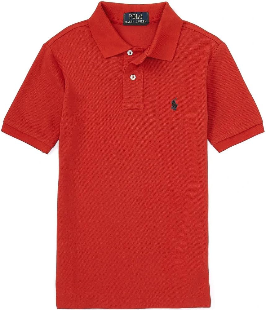 Signature embroidered Pony at the left chest. Ribbed Polo collar. Two-button placket. Short sleeves with ribbed armbands. Tennis tail. 100% cotton. Machine washable.