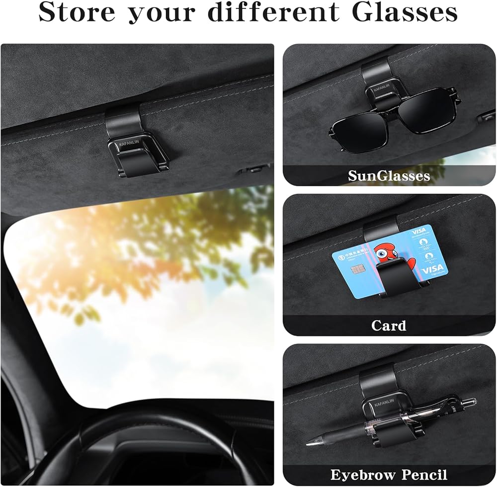 عبوتان من حامل النظارات الشمسية لمشبك واقي السيارة ومشبك بطاقة التذاكر على النظارات الشمسية ومنظم ملحقات حاجب السيارة (KAFANLIN أسود عبوتان)