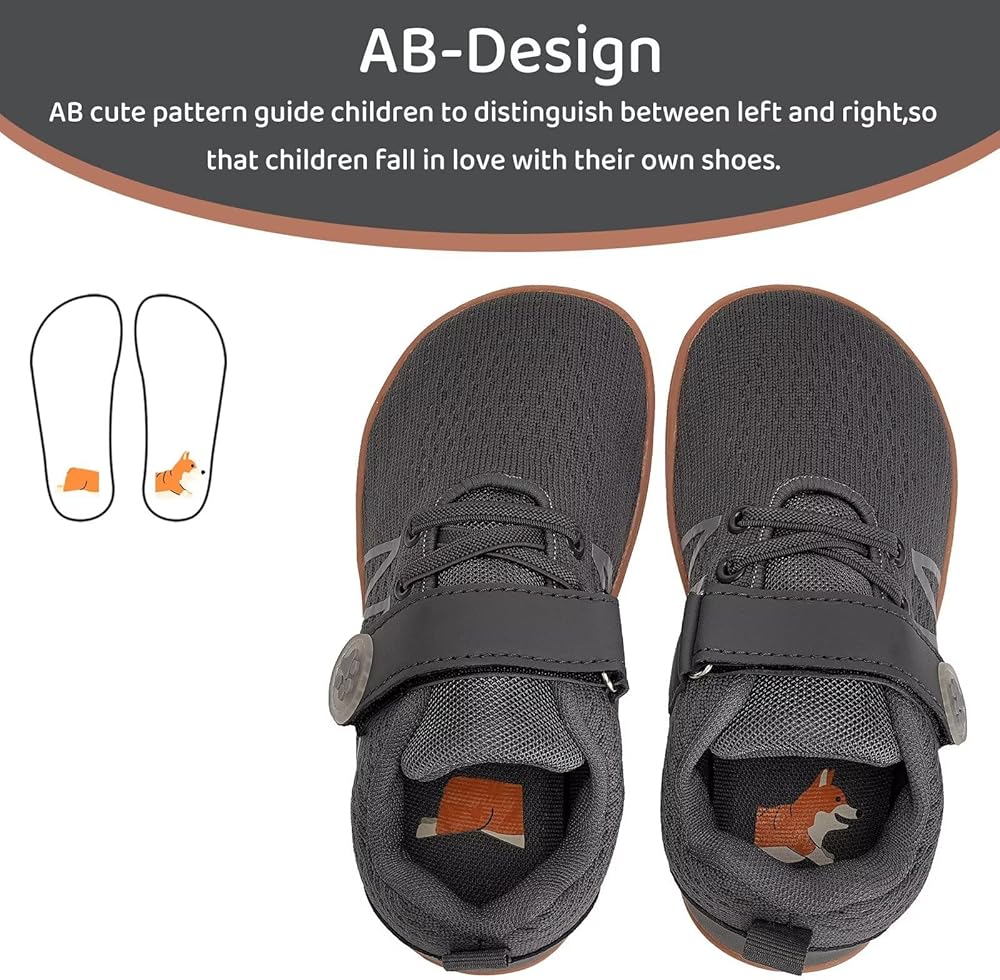 • نعال AB Design: تم تصميم هذا النعل الفريد خصيصًا للأطفال. يمكن للنعل الداخلي من الإسفنج الذكي بنمط AB توجيه التمايز بين اليسار واليمين بسهولة، مما يوفر توسيدًا ودعمًا ممتازين، مما يجعله خيارًا مثاليًا للمشي.
