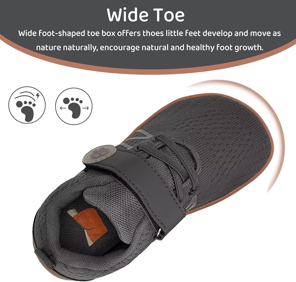 • نعل مضاد للانزلاق: يتميز هذا الحذاء الرياضي للأطفال الصغار بنعل متفرق مضاد للانزلاق يحاكي راحة المشي حافي القدمين، مما يجعله خيارًا مثاليًا لمختلف الأنشطة. إنهم يدعمون ويضمنون استقرار كل إجراء.