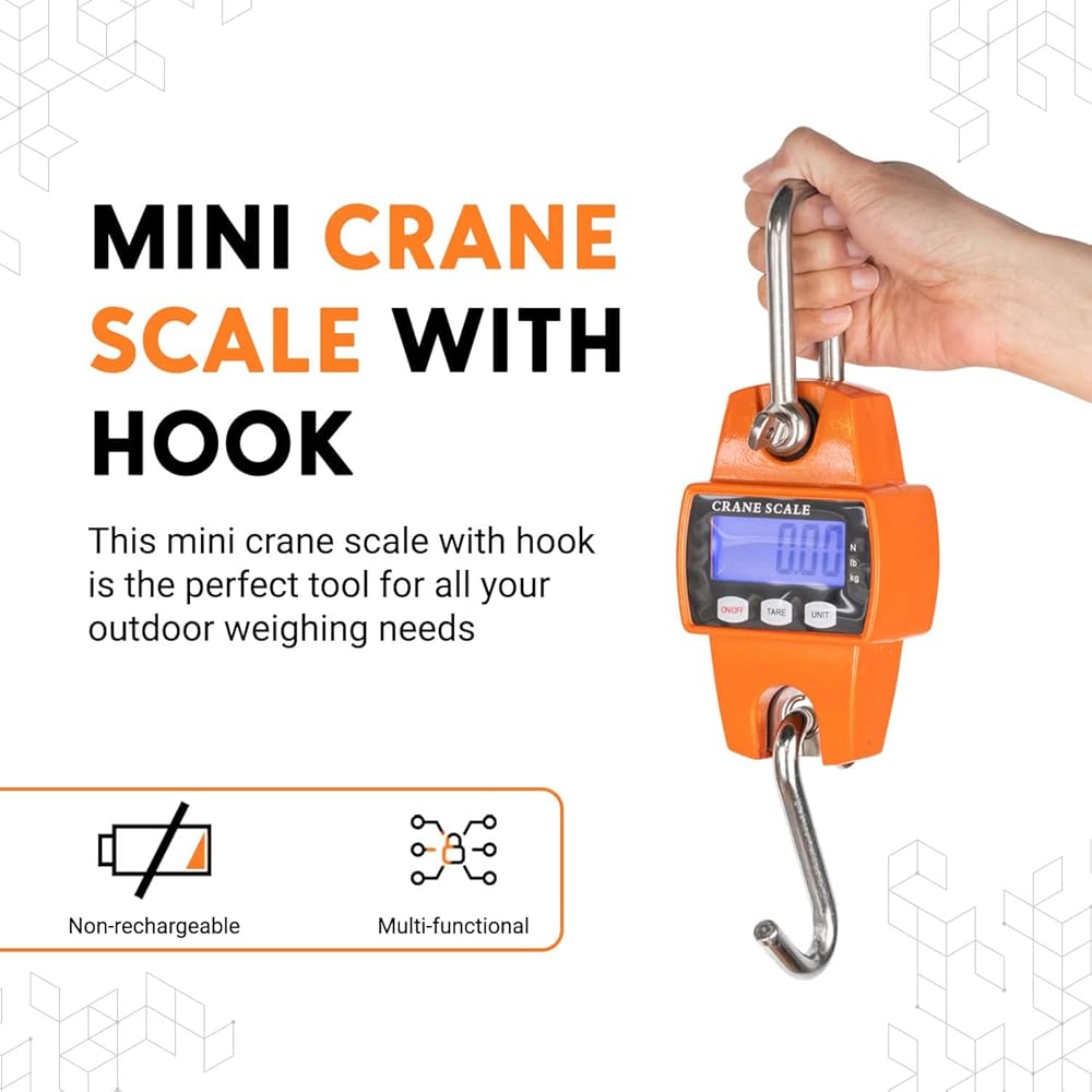 • This mini crane scale with hook is the perfect tool for all your outdoor weighing needs! With a 660lb capacity, this multi-functional digital hanging scale is perfect for farming, hunting, and fishing