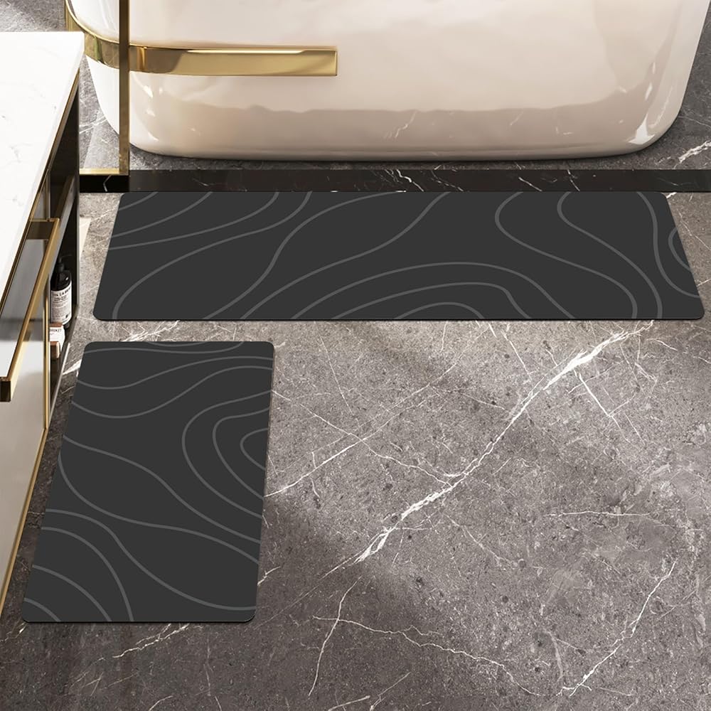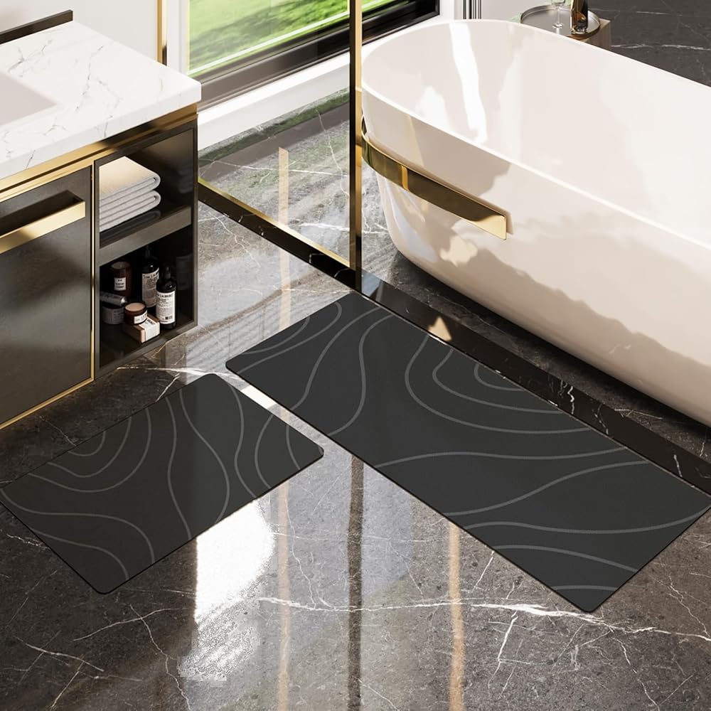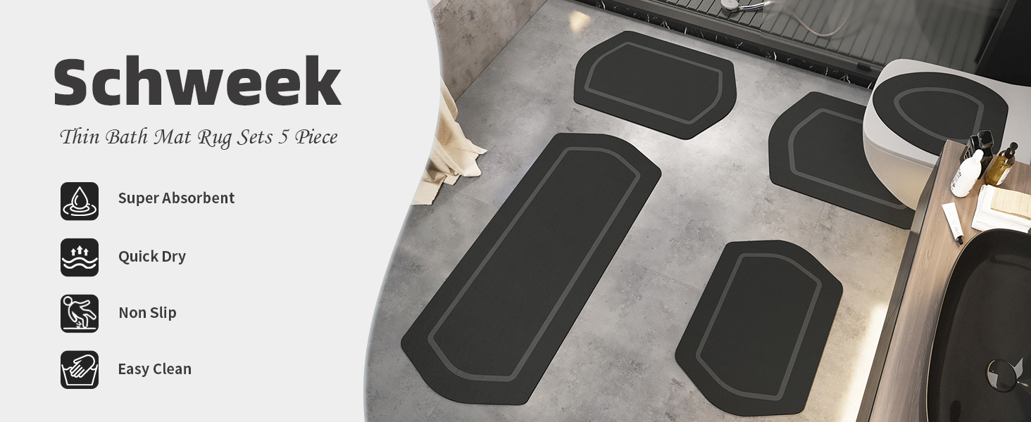 استخدام واسع: مجموعة سجادة الحمام الرفيعة من Schweek تناسب أسفل الباب، فهي أكثر من مجرد سجادة حمام. يمكنك استخدامه في أي مكان معرض للبلل. مناسبة للحمام، الحوض، المطبخ، غرفة الغسيل، غرفة المعيشة، غرفة النوم، المدخل، إلخ. مقبض سفلي مطاطي غير قابل للانزلاق، آمن وعملي