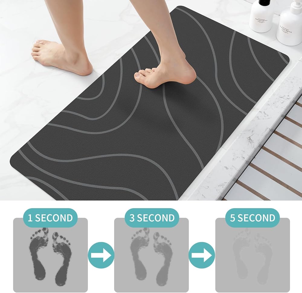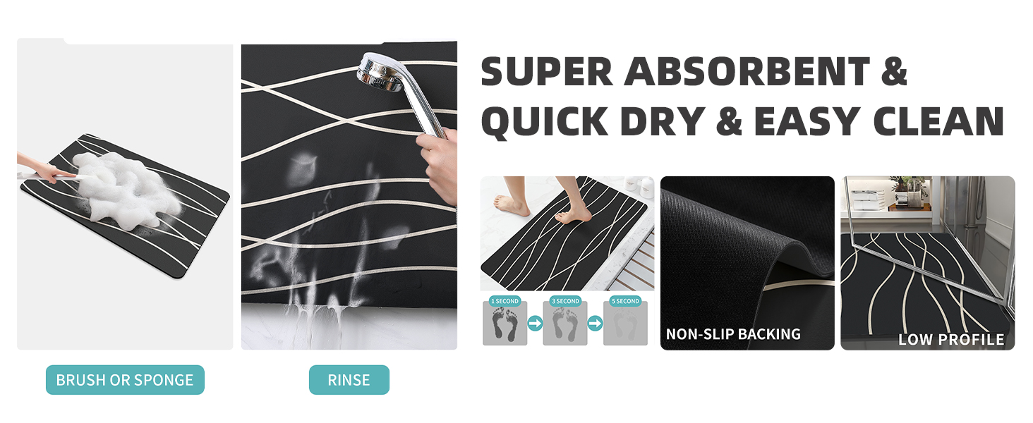 سجادة حمام ماصة وسريعة الجفاف: سجادة الحمام غير القابلة للانزلاق من شويك مصنوعة من تراب الدياتومي الناعم الفاخر، عندما تخرج من حوض الاستحمام أو الدش، تمتص سجادة الحمام قطرات الماء بسرعة. عند الخروج، تختفي العلامة المائية في بضع دقائق، تمامًا كما لو أنها لم تكن مبللة أبدًا