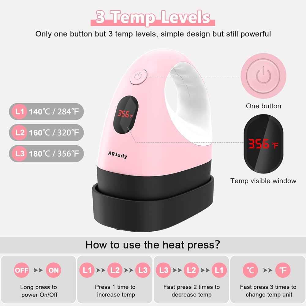 صغيرة ولكنها مفيدة: كضغطة حرارية صغيرة سهلة الاستخدام، فهي مناسبة جدًا لمشروعات نقل الحرارة الشخصية ومشروع الحبر التسامي ومناسبة لبعض المشروعات الصغيرة مثل طباعة القمصان والأحذية والحقائب والجوارب والأقنعة والوسائد ووسادات الماوس وقاعدة الشاي. وما إلى ذلك
