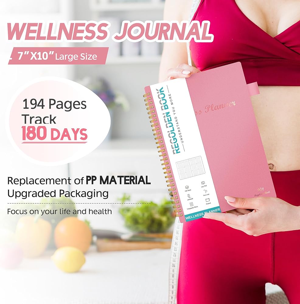 180 يومًا من مجلة الصحة والطعام: تتكون مجلة الطعام لفقدان الوزن من 12 صفحة شهرية و181 خطة يومًا (تغطي 181 يومًا من جداول الاحتياجات الصحية)، وتساعدك على الوصول إلى أهدافك الصحية وإنشاء نمط حياة صحي ومتوازن.