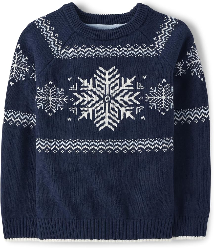 LONG SLEEVE SWEATER — Decked out in dino fairisle, this sweater will keep him comfy and cute!
