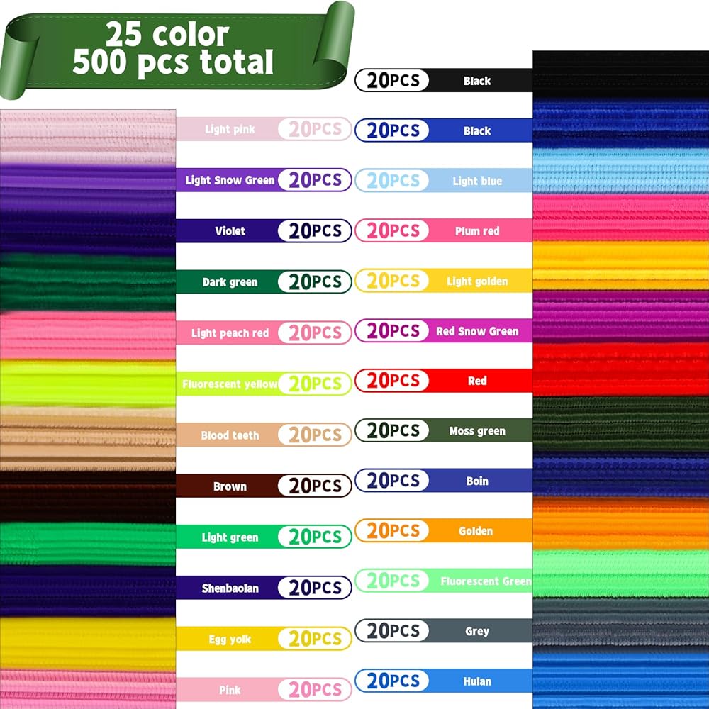 منظفات الأنابيب الملونة: تحتوي هذه المجموعة من منظفات الأنابيب على 20 لونًا مختلفًا، بألوان متنوعة ومشرقة، معظمها من الألوان الشائعة المستخدمة في المشاريع اليدوية، والتي يمكن أن تساعدك في صنع الحرف الملونة