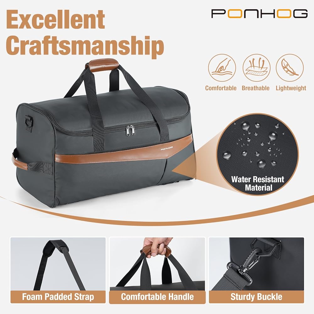 • حجم مريح للحمل: يبلغ مقاس حقيبة الملابس لدينا 21.65 × 11.81 × 13 بوصة، مما يلبي متطلبات الأمتعة المحمولة على متن شركات الطيران. يسمح لك حزام الأمتعة بوضعه على حقيبة السفر، وهو أمر مريح للحمل في مناسبات الرحلات