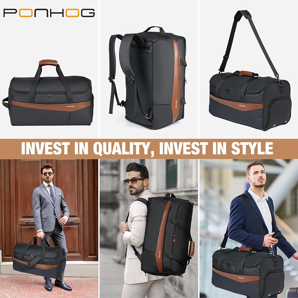 حقائب ملابس للسفر - حقيبة دفل للملابس قابلة للتحويل مع حجرة للأحذية، حقيبة سفر معلقة 3 في 1 مع حزام كتف للرجال والنساء، أسود
