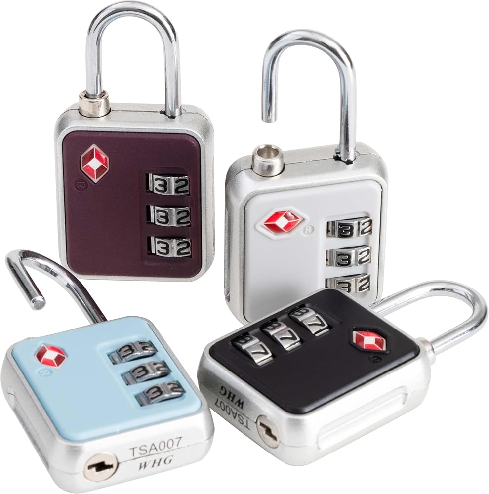 أقفال أمتعة G Force 4 Pack ذات 3 أقراص | تمت الموافقة عليه من قبل إدارة أمن المواصلات الأمريكية | اضبط قفلك المختلط المكون من 3 أرقام | ملحقات السفر | حقيبة | حقيبة الظهر | متعدد الألوان