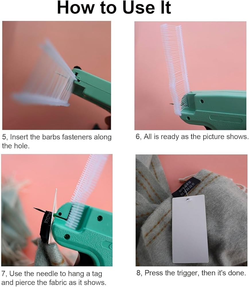 عالمي لجميع أشكال العلامات القياسية: يمكن استخدام مسدس وضع علامات الملابس القياسي الخاص بنا مع معظم الأحجام أو العلامات التجارية للمثبتات القياسية.