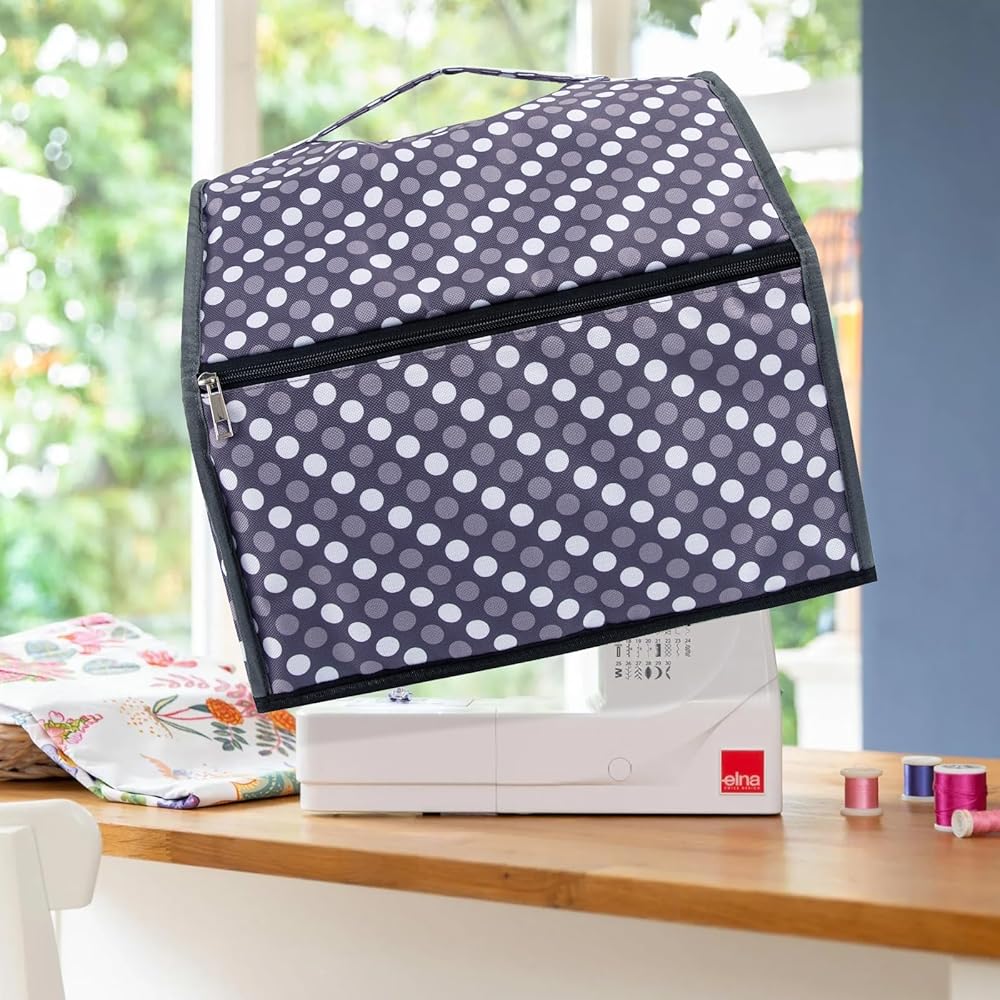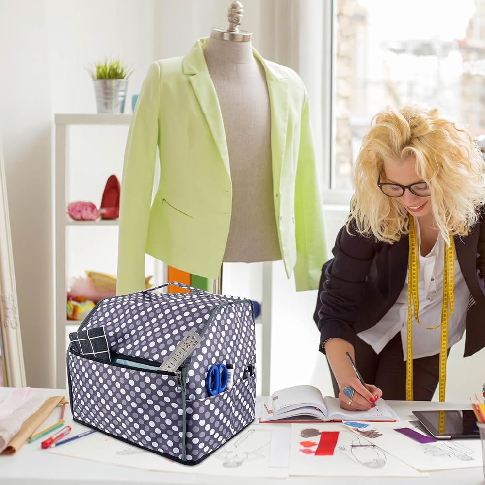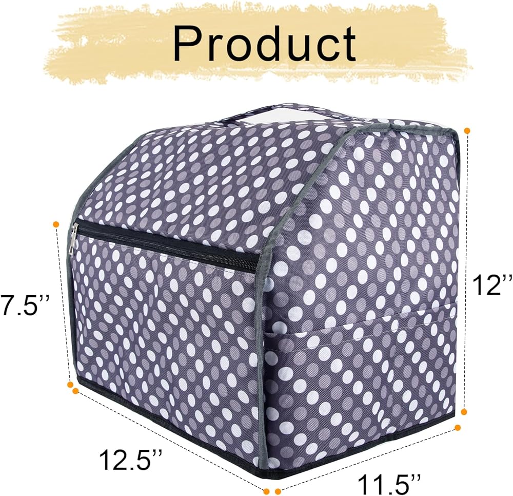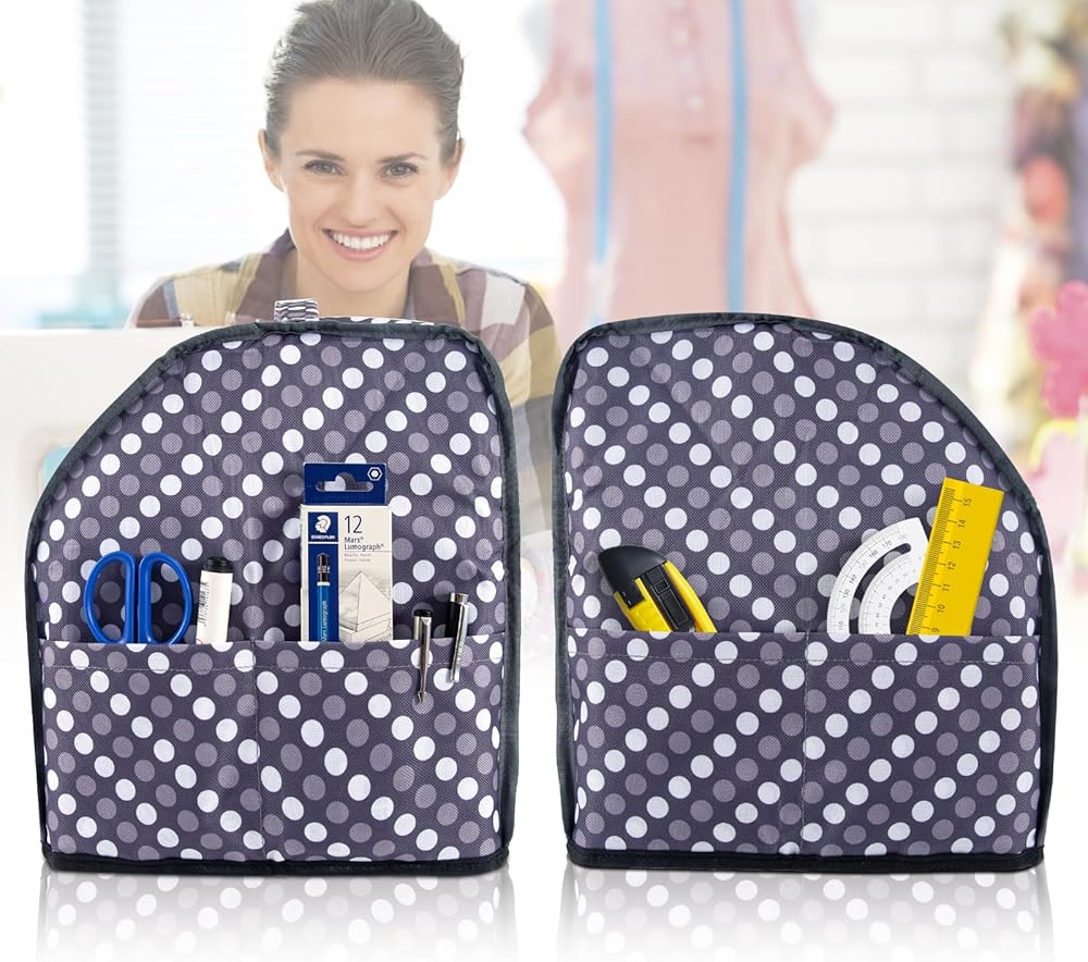 غطاء ماكينة سيرجر مع جيوب للتخزين، غطاء غبار ماكينة الخياطة لمعظم الماكينات القياسية، غطاء ماكينة أوفرلوك. ملحقات ماكينة سيرجر وأوفرلوك. حقيبة حمل سيرجر. نقاط رمادية