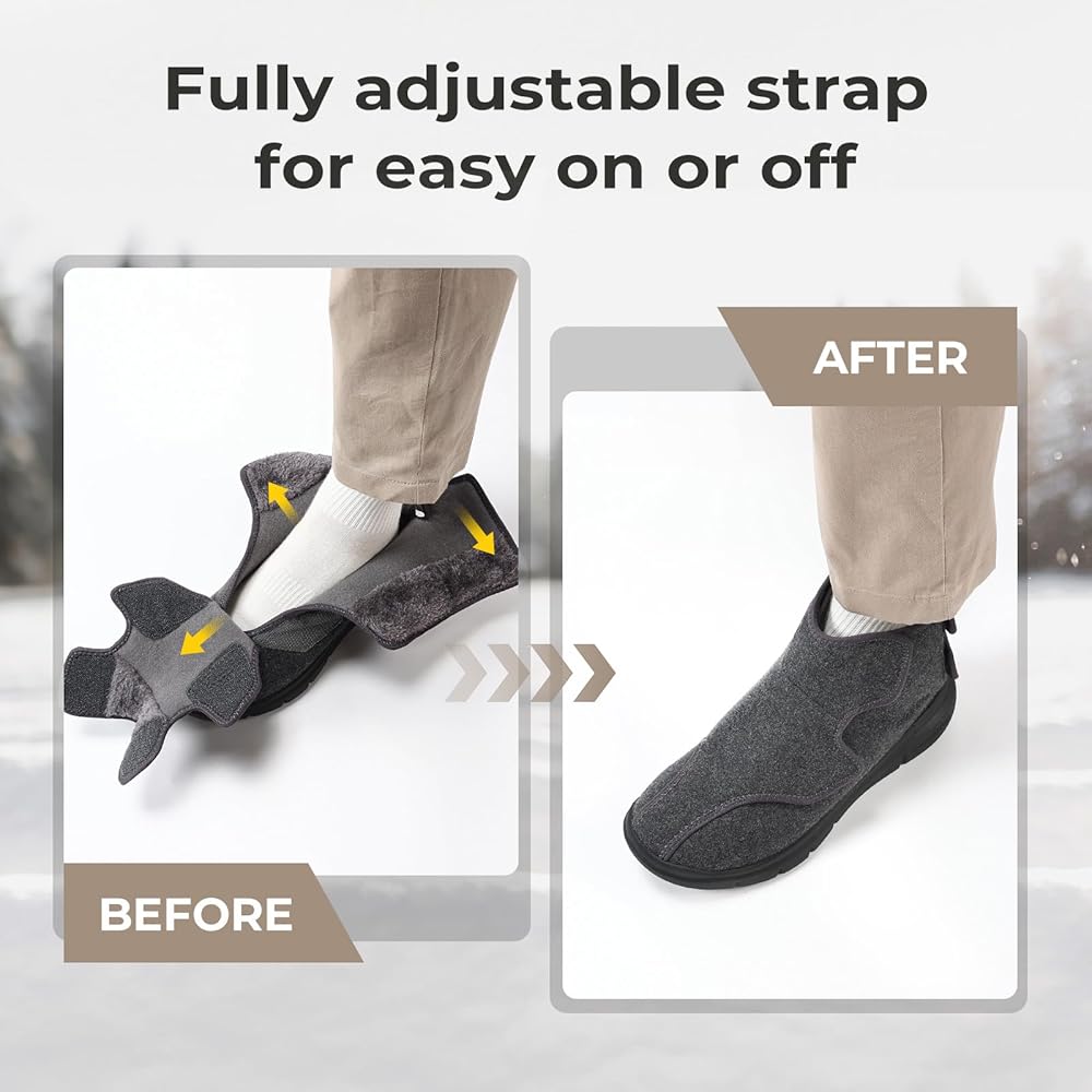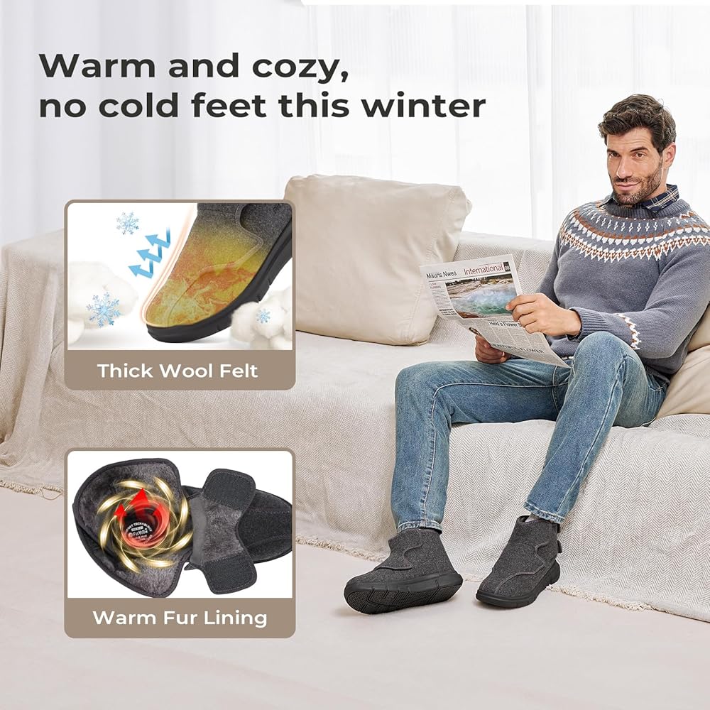 دافئ ومريح: هذه الأحذية الرجالية العريضة للغاية لمرضى السكري تبقي قدميك دافئتين في الصباح البارد في أشهر الشتاء. توفر بطانة الفرو القطيفة عزلاً استثنائيًا للحصول على أقصى درجات الدفء.