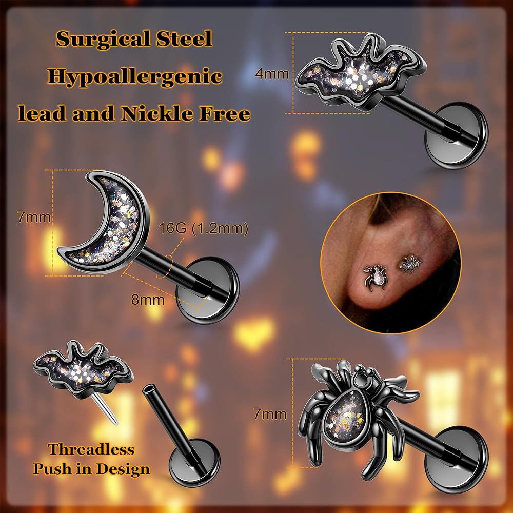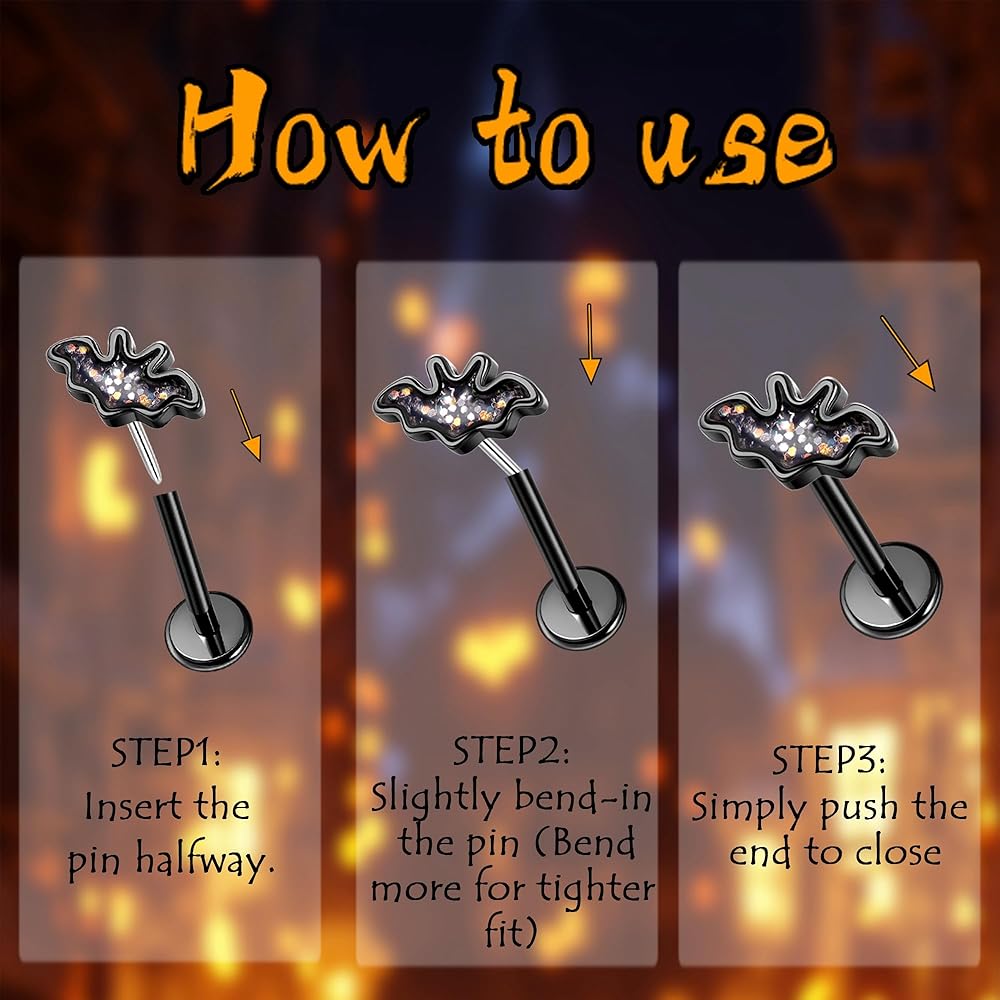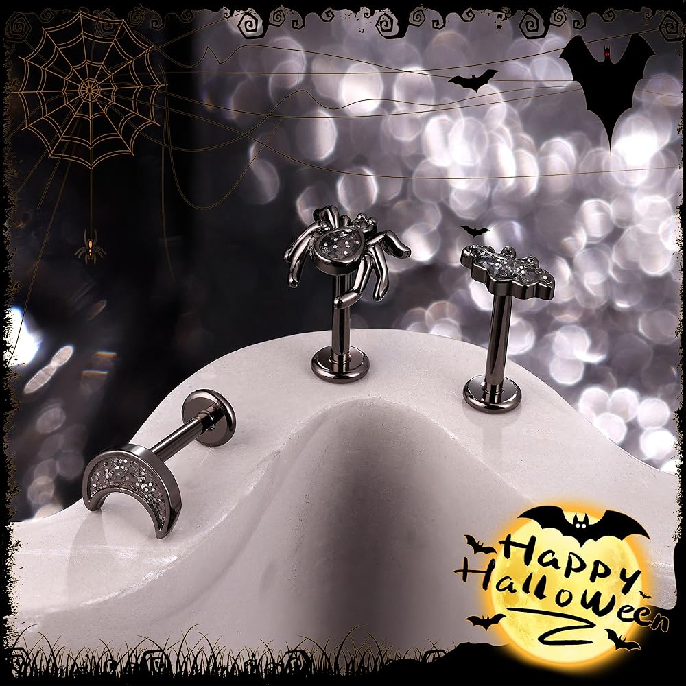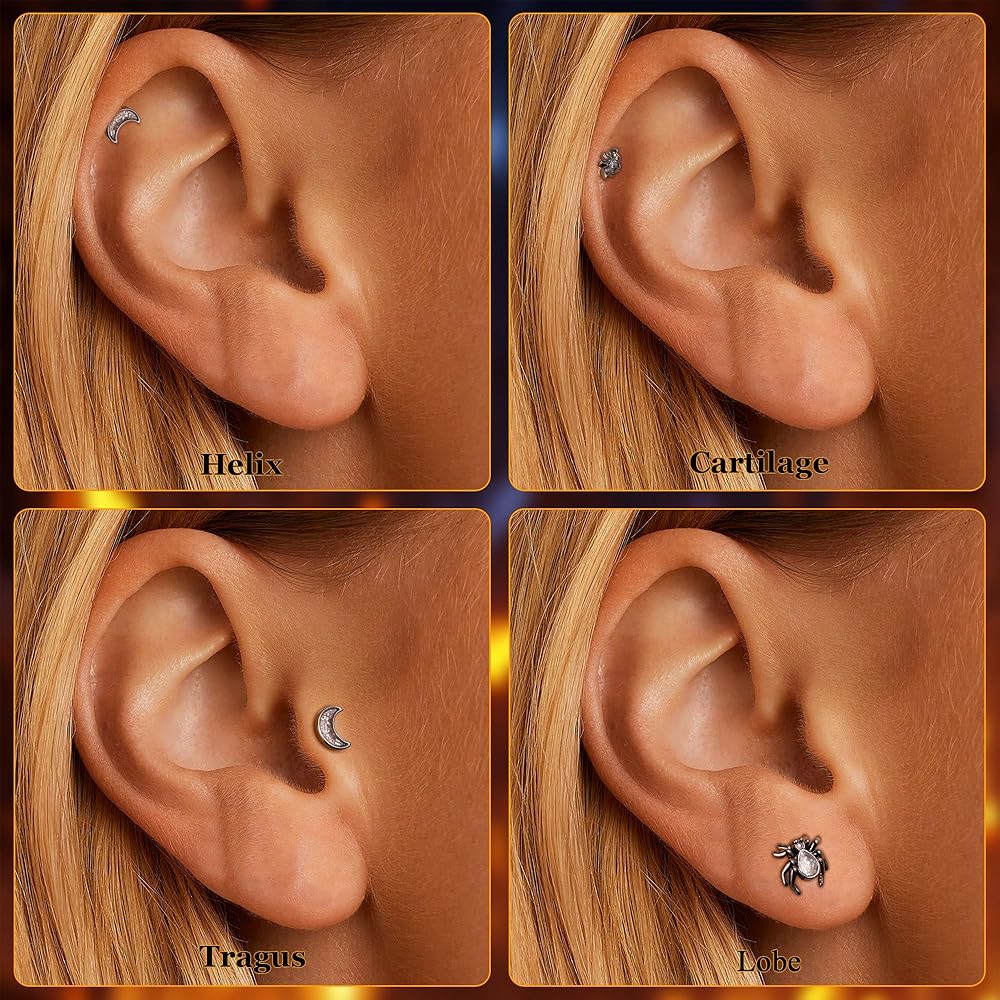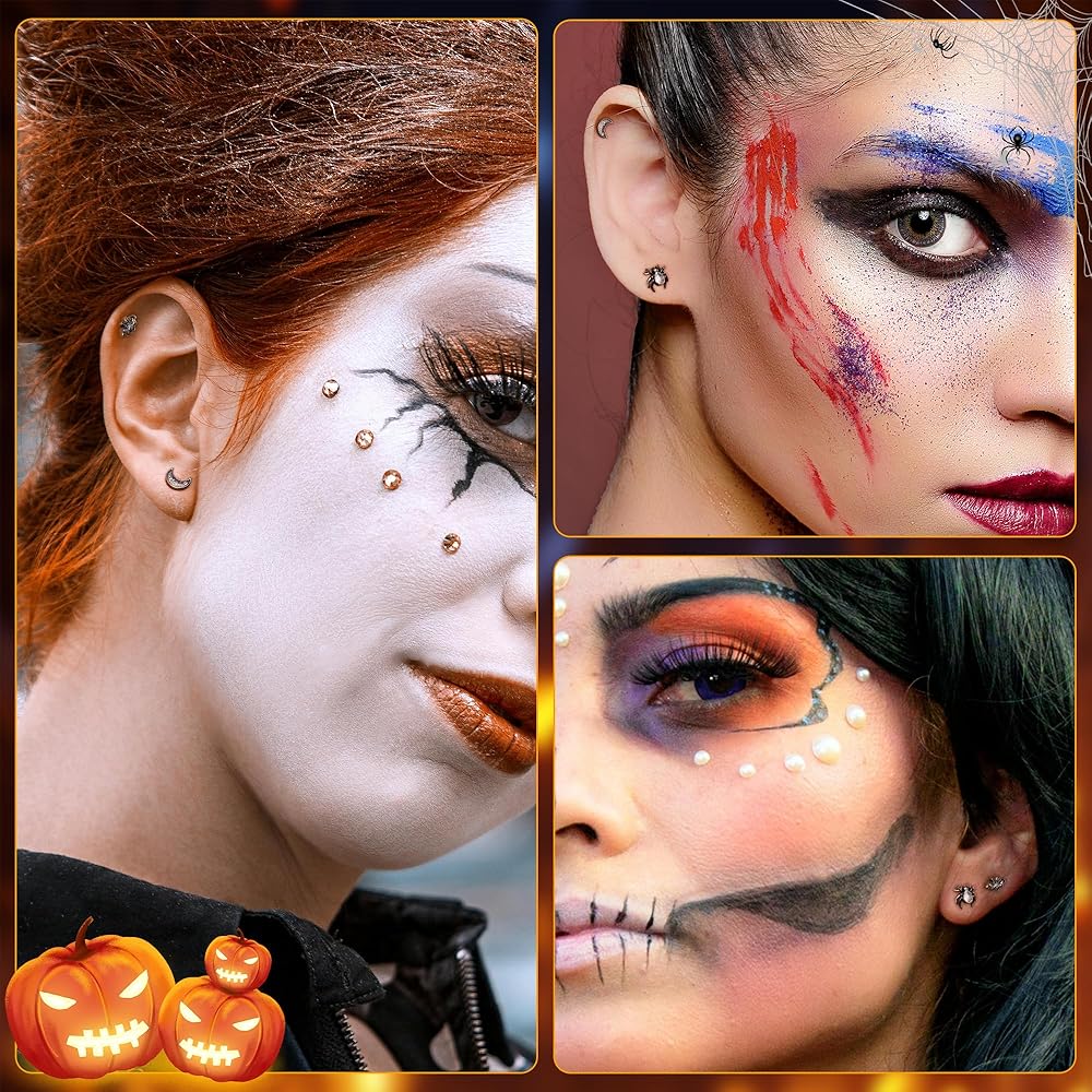 • أقراط غضروفية على طراز الهالوين: سوف تحصل على 3 قطع مصممة بأقراط غضروفية على شكل خفاش وقمر وعنكبوت. تصميمها الفريد يكمل مجموعة متنوعة من الملابس المخيفة ويرفع مظهرك في موسم الهالوين.