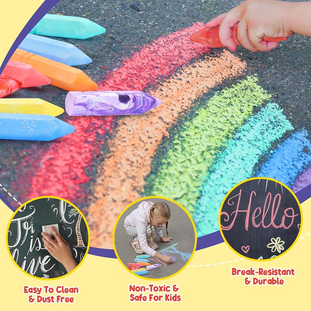 هدية رائعة للرسم: سواء على الأرض أو السبورة أو الخشب أو البلاط أو الورق أو أي سطح آخر، يمكنك الرسم بثقة. مثالية للرسم على الأرصفة أو الشوارع أو الساحات أو الملاعب أو الممرات أو في الداخل، ويمكن استخدامها أيضًا لرسم شعارات لحفلات أعياد الميلاد أو أحداث العطلات أو العروض الترويجية، وما إلى ذلك. تقدم متعة وإبداعًا غير محدود للأطفال والمراهقين والبالغين، ويمكن للجميع المغادرة علامة فريدة من نوعها في العالم! هدية للأطفال الأولاد البنات.