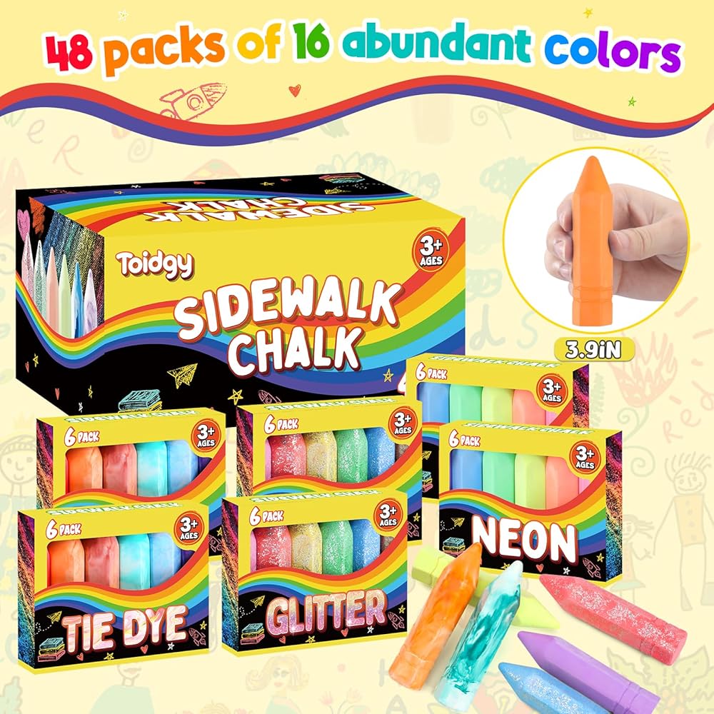 48 قطعة من طباشير الرصيف للأطفال في 8 عبوات، 18 لونًا، مجموعة طباشير الرصيف قابلة للغسل، طباشير الرصيف الكبيرة في الهواء الطلق للأطفال الصغار، ألعاب الأطفال في الهواء الطلق مع الرسم على السبورة والملعب