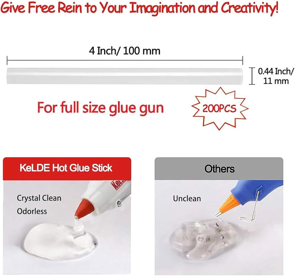 200 قطعة من أعواد الصمغ الساخنة بالحجم الكامل من KeLDE، مقاس 0.43 × 4 بوصة، متوافقة مع معظم مسدسات الغراء، للحرفية الإبداعية، والإصلاحات السريعة أو التثبيت