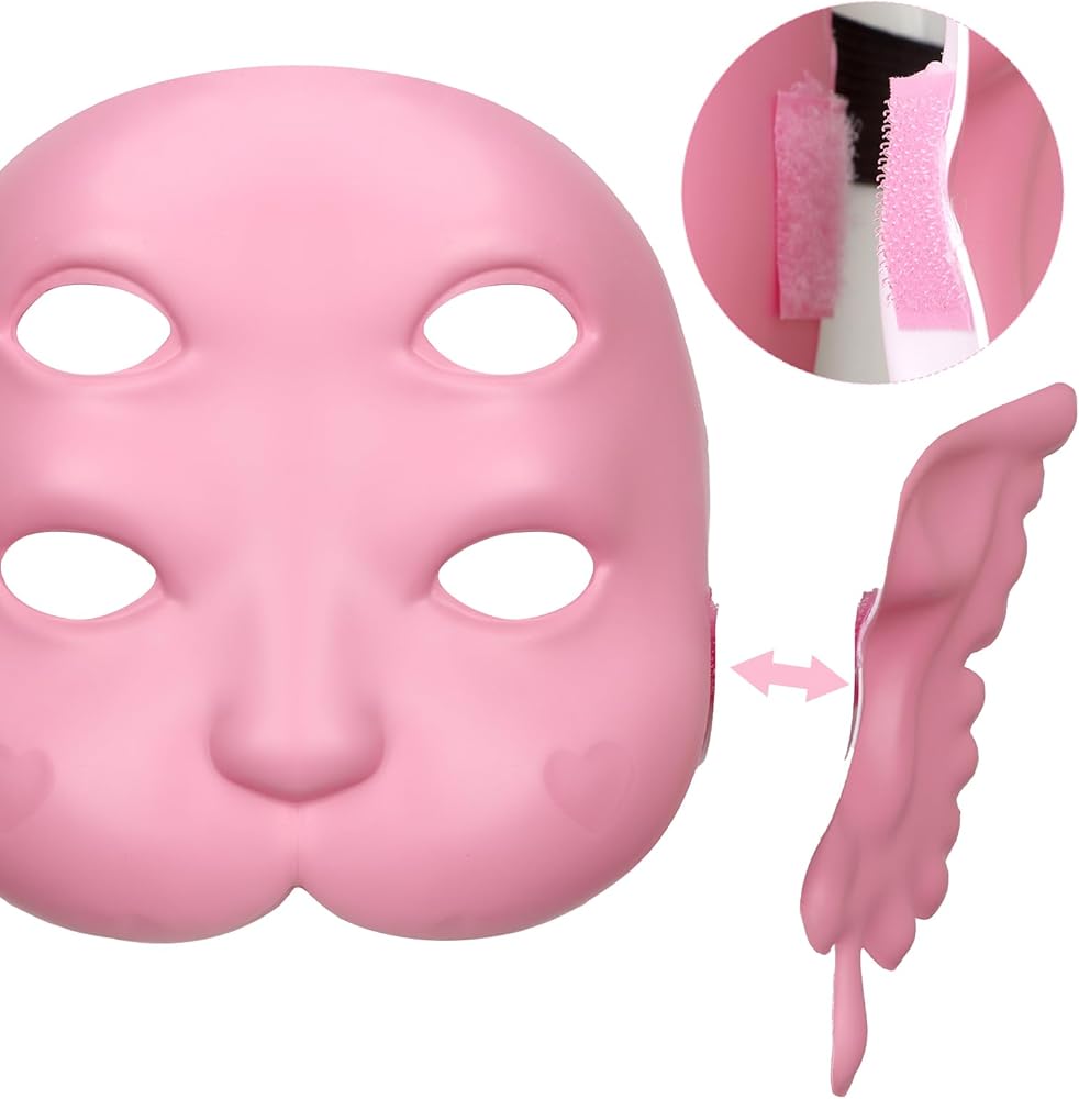 This adorable mask is made of plastic,sturdy and lightweight,easy to carry around,this full face mask has four eyes and two ears,smooth surface and edge line will not hurt you,it is in the pink colour,also you could paint it in your own style,3D baby face build to give you a cute feeling,and 2 ears on both could take off or stick it on with the help of viscose part,i believe you will like it