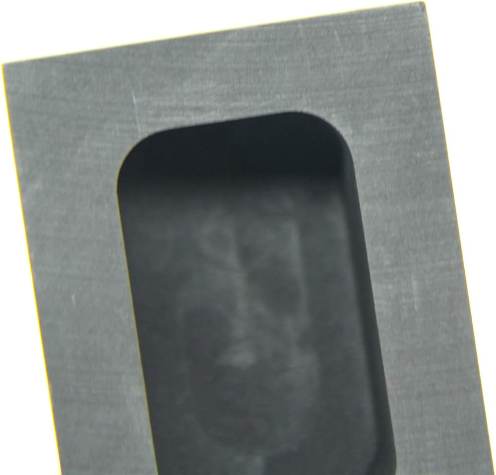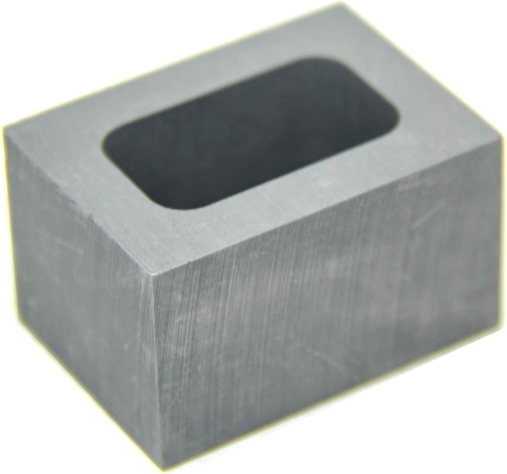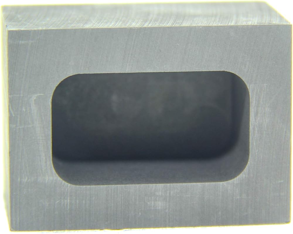 [Ingot Mold Size] For Outer size:50x36x30mm/19.7x14.2x11.8in; Inner:35x20x22mm/13.8x7.9x8.7in; Capacity: 250g Gold; 136g Silver; Melting and casting metals such as Gold, Silver, Brass, Aluminum, Copper, Zinc, Plumbum, etc. Graphite oil bath, ingot gold, silver, copper, aluminum, glass, etc., non-sticking and not bursting, high-purity, high-density, high-strength graphite, fine processing, fine and smooth surface without visible pores