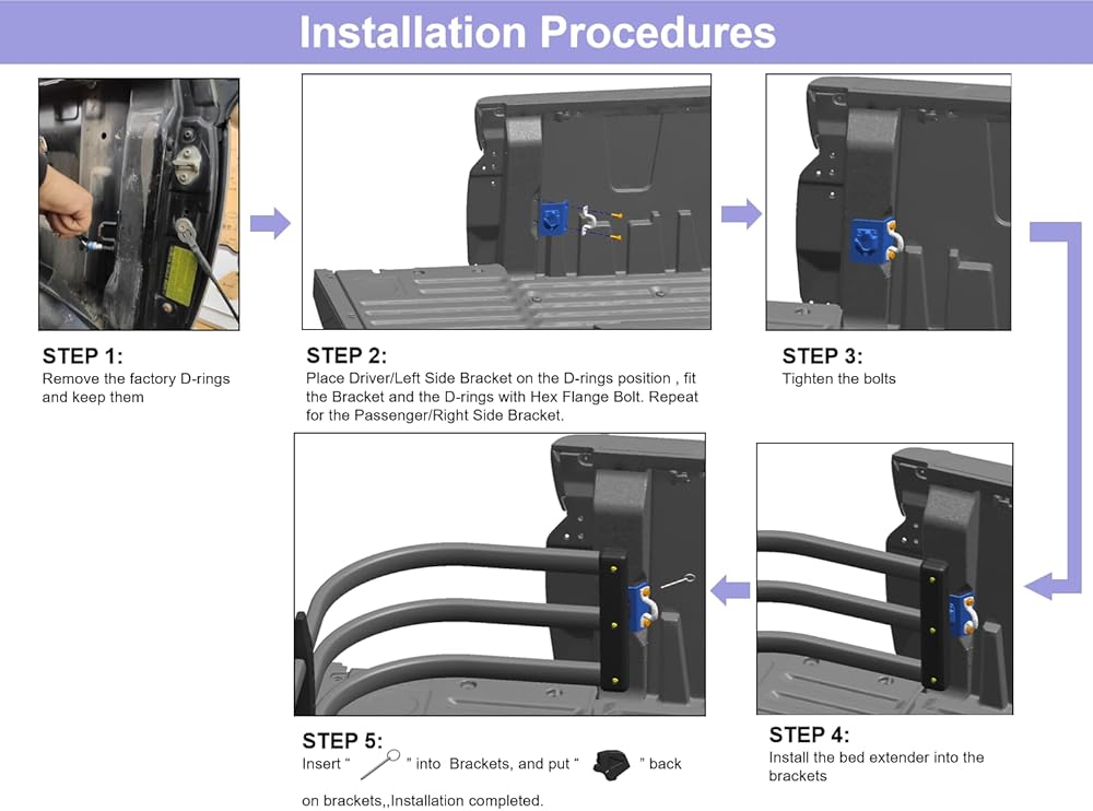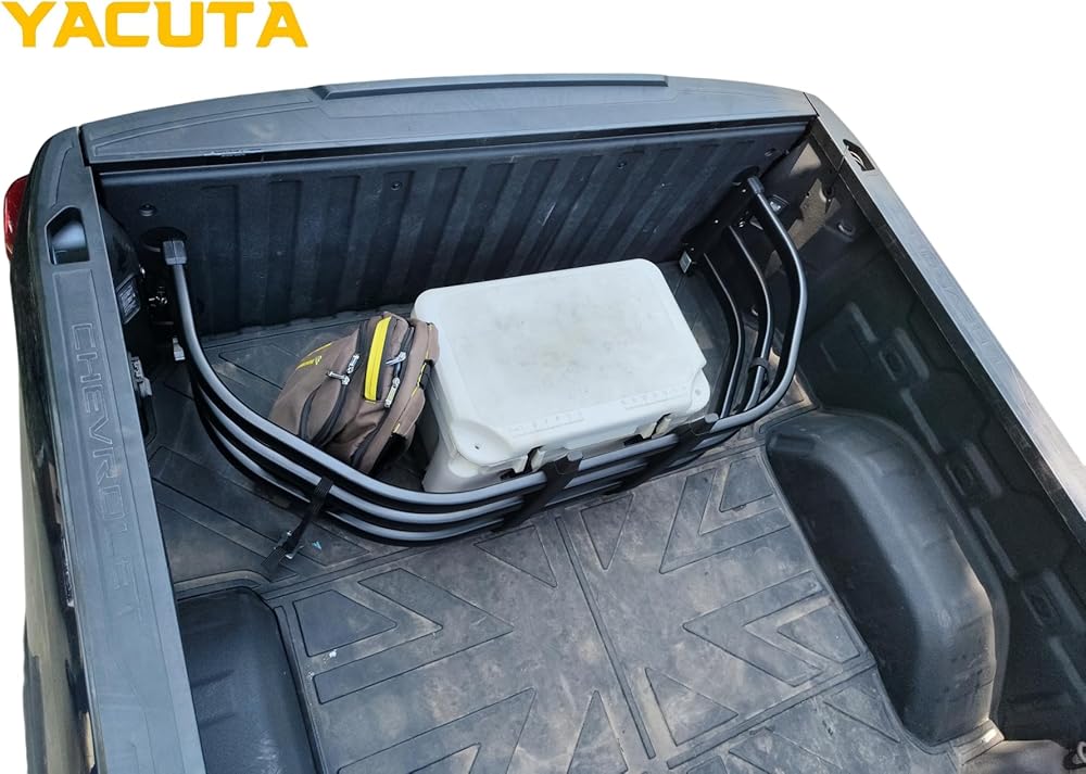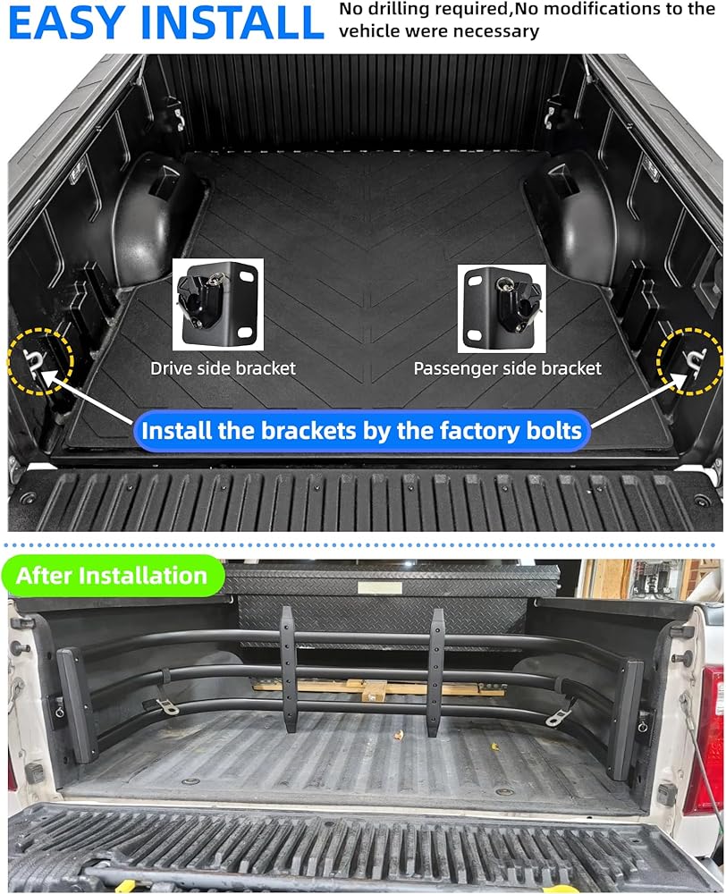 【FUNCTION】Features a 180° flip design,flip it inside with tailgate closed to keep smaller cargo from sliding around and to keep items safe.perfect for flowerpot,toolbox,groceries and so on.Flip it out with the tailgate down and gain up to 23 inch of additional cargo space,perfect for larger items such as ladders, wood, kayaks, motorcycle ,UTVs.
