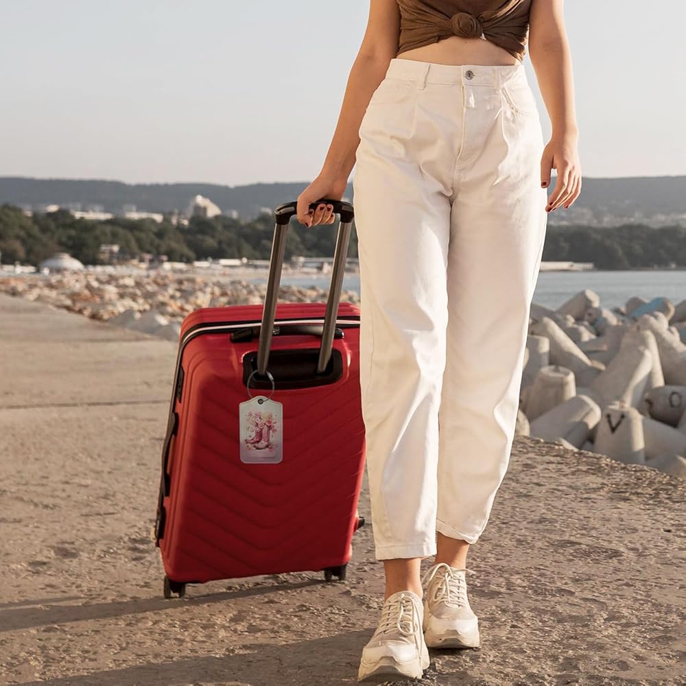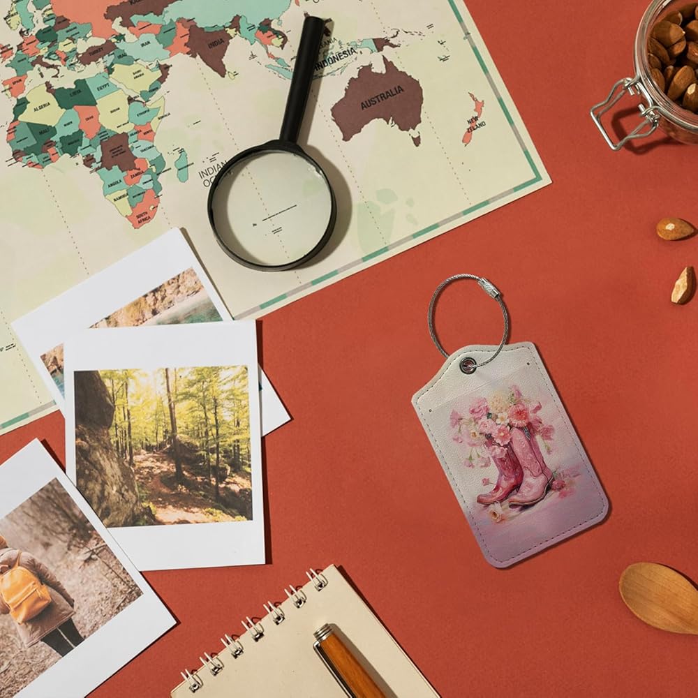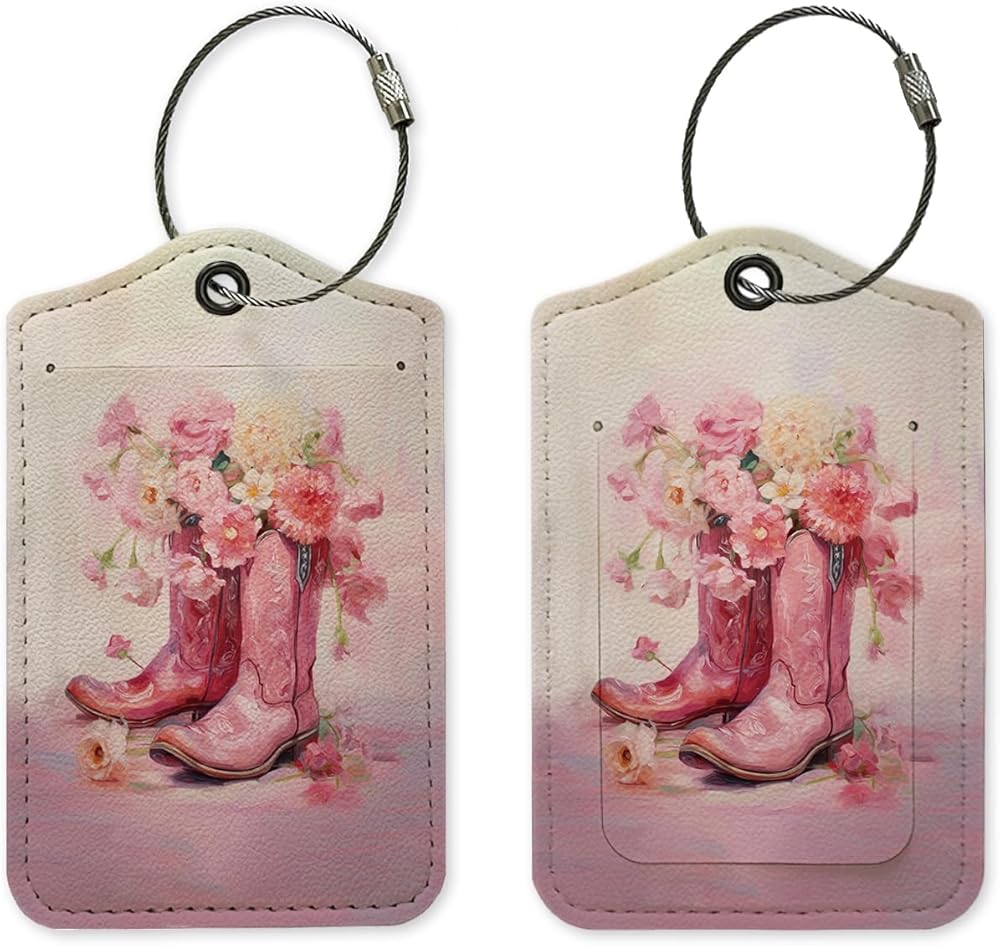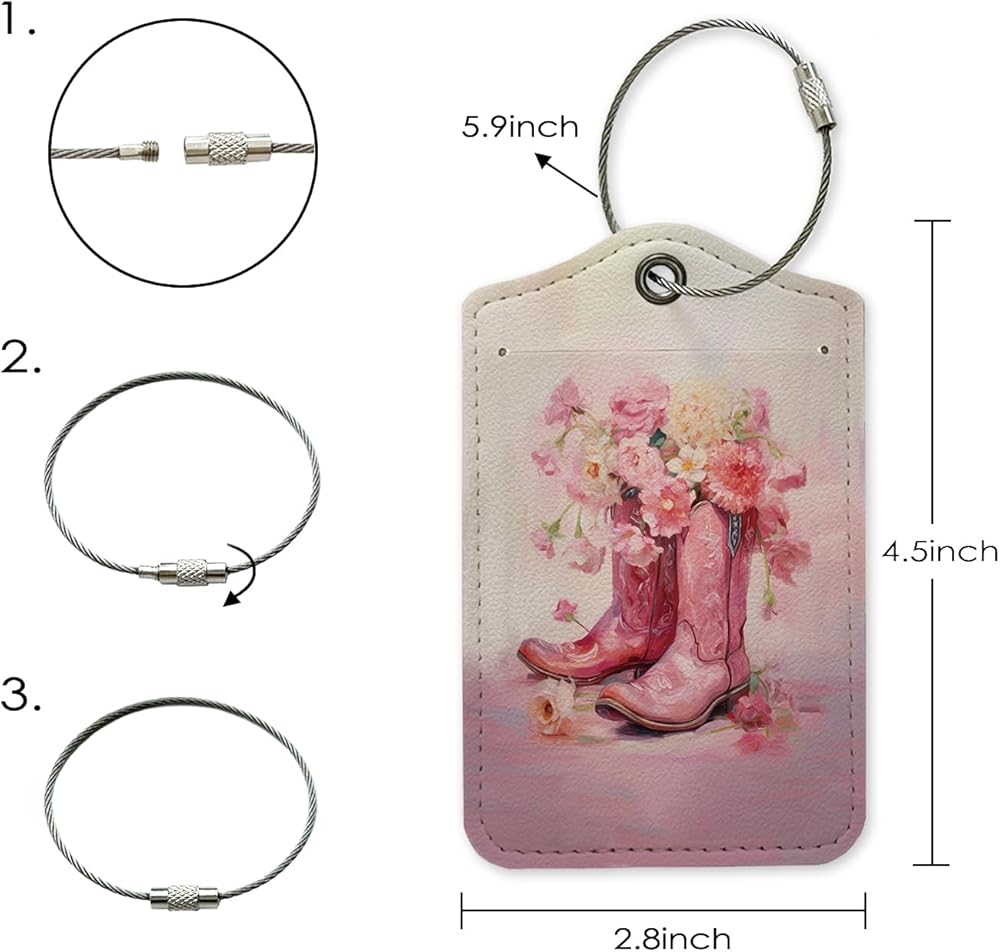 علامة الأمتعة الغربية الوردية، علامات الأمتعة لحقائب السفر، هدايا راعية البقر، هدايا غربية للنساء، حماية الخصوصية من جلد البولي يوريثان، معرفات علامات أسماء السفر للأمتعة