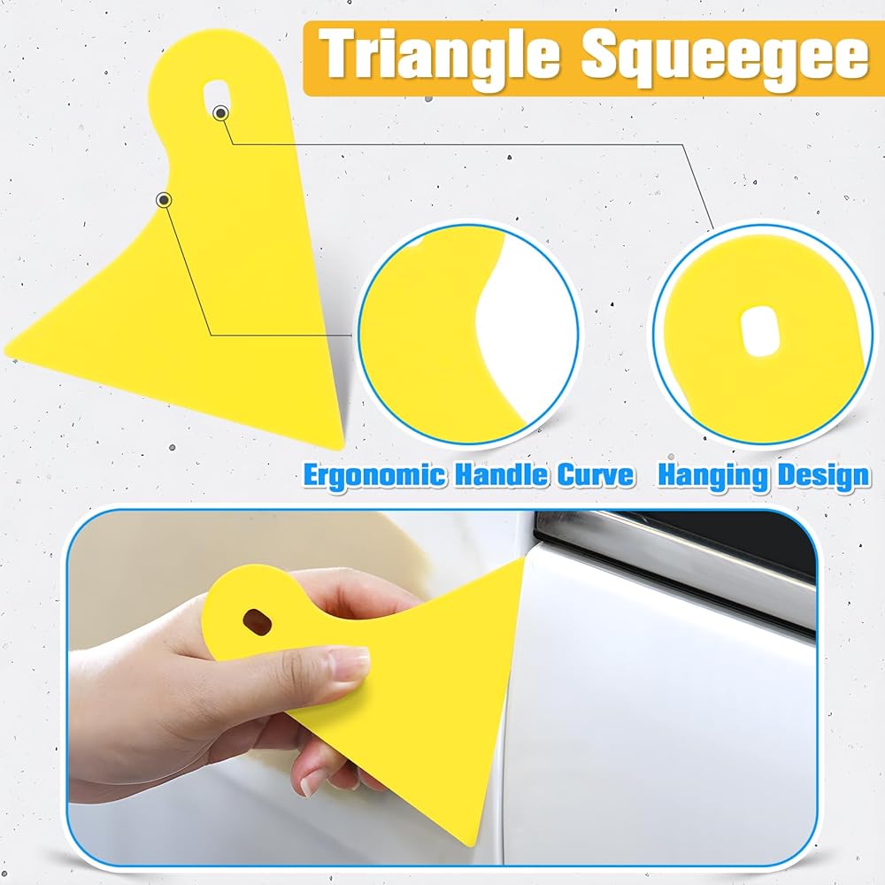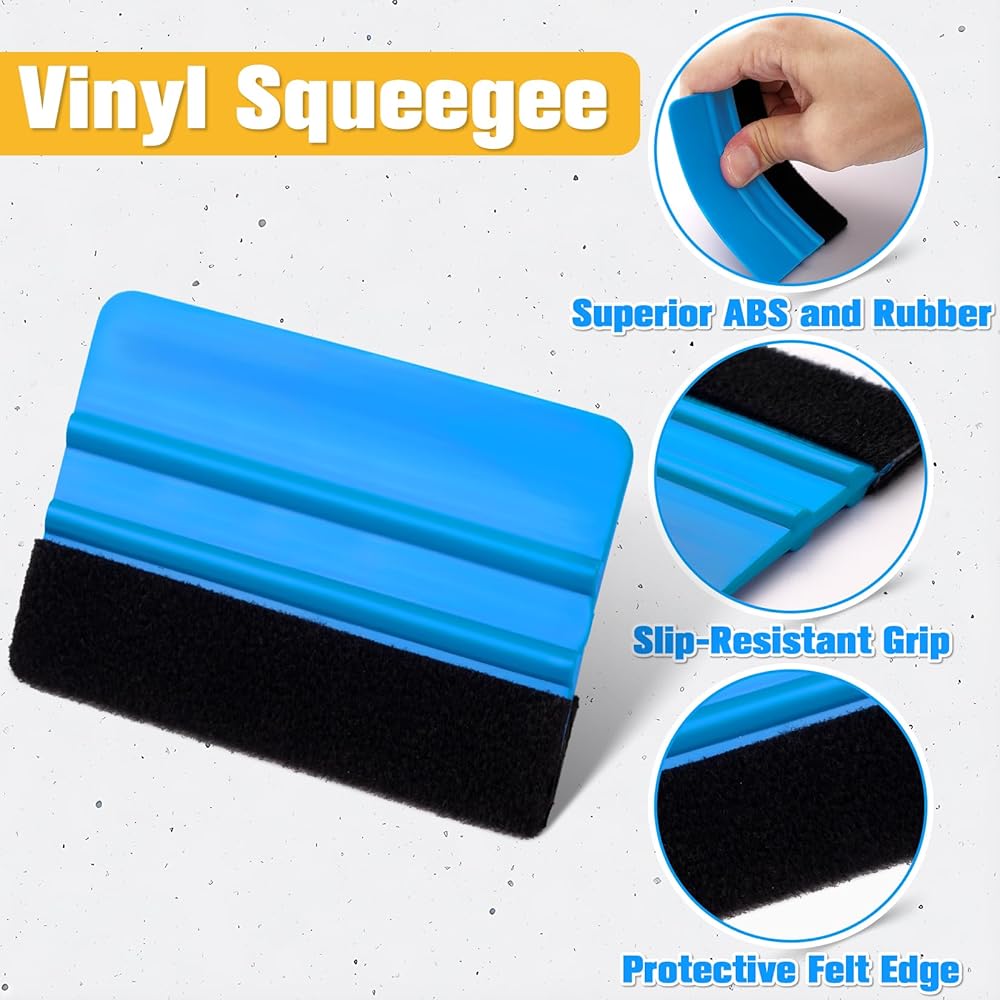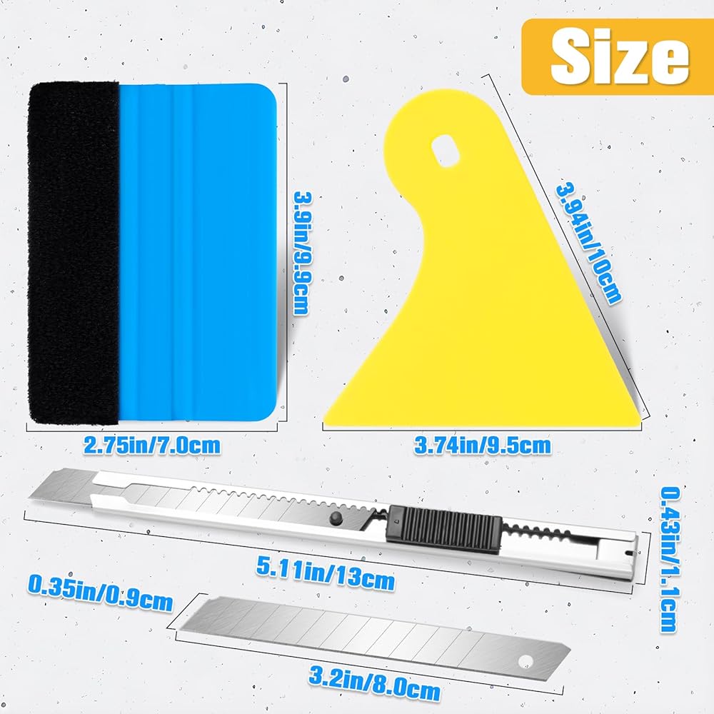 ممسحات مزدوجة لتطبيقات متعددة الاستخدامات: تتميز أدوات تغليف الفينيل لدينا بنوعين من ممسحة الفينيل: واحدة زرقاء مع حافة ناعمة وممسحة مطاطية بيضاء اللون. الممسحة ذات الحواف اللبادية مثالية لوضع الأفلام على المناطق الأكبر، مما يوفر قبضة قوية وضغطًا ثابتًا يساعد على الالتصاق بالفينيل بشكل لا تشوبه شائبة. اللون الأبيض ممتاز لطرد الماء وفقاعات الهواء والغبار تحت الفينيل، مما يضمن استخدامًا سلسًا ونظيفًا.