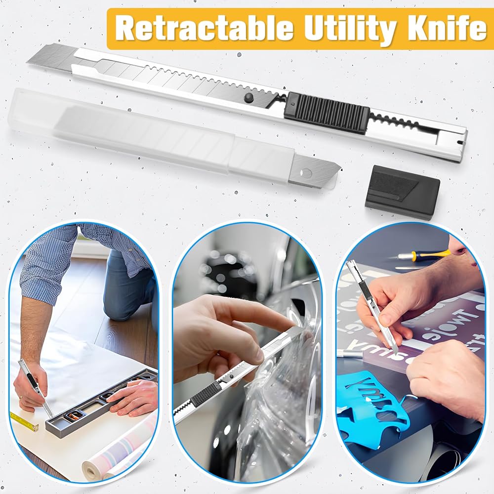 سكين دقيق مع شفرات متينة: تم تصميم السكين الحرفية في مجموعة الصبغة هذه للحصول على قطع دقيقة، مما يجعلها مثالية لقطع ومعالجة طبقة الفينيل. تشتمل المجموعة على 10 شفرات رقم 11 قوية وتدوم طويلاً، مما يضمن لك إمكانية التعامل مع أي مشروع دون القلق بشأن توفر الشفرات. سواء كنت تقوم بتغليف سيارة أو تركيب ورق حائط، فإن هذه الأدوات توفر الدقة التي تحتاجها.
