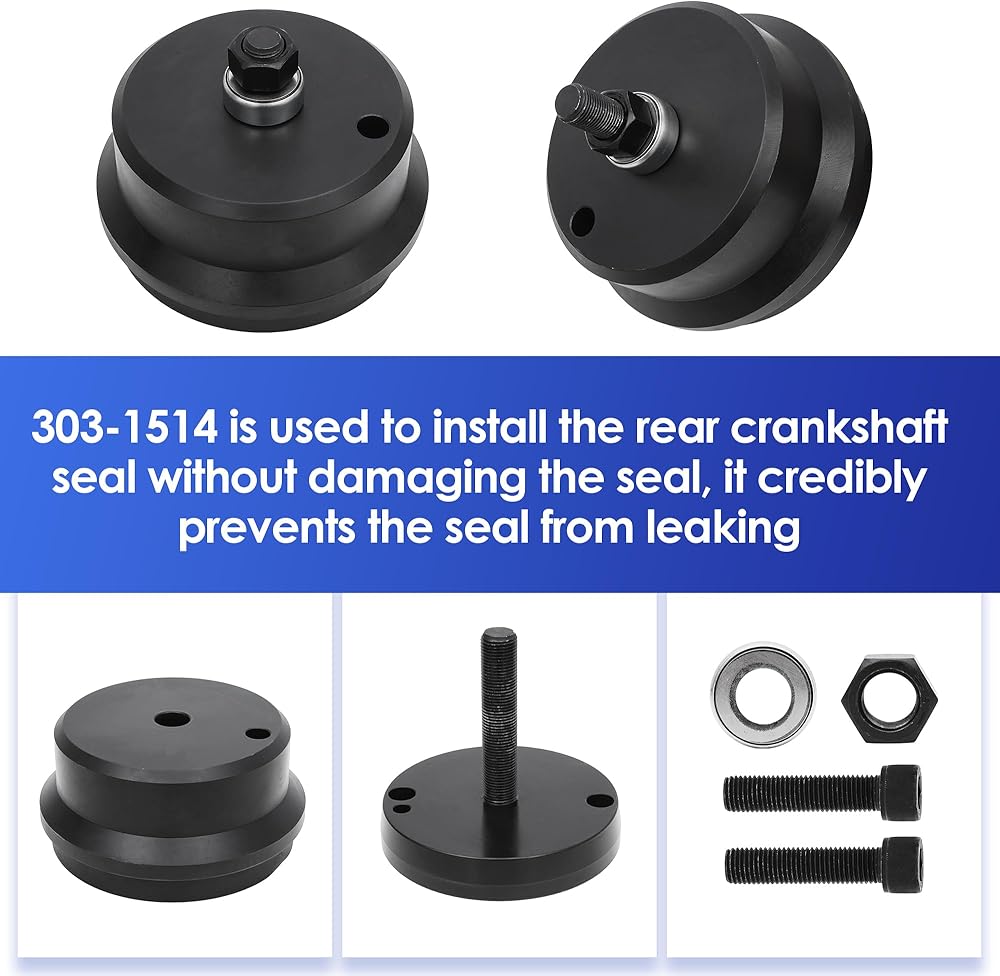خطوات التثبيت: قم بتنظيف أداة الختم الرئيسية الخلفية، وتحقق من وجود أي ضرر أو عيوب في الختم، ثم ضع ختم العمود المرفقي الخلفي بشكل صحيح على الطرف الخلفي من العمود المرفقي للمحرك، وقم بتحريك أداة تثبيت ختم العمود المرفقي الخلفي 303 1514 على ختم العمود المرفقي الخلفي، تأكد من توسيطه ومحاذاته بشكل صحيح، ثم اضغط برفق لوضعه بشكل صحيح في العمود المرفقي، وأخيرًا قم بإزالة أداة تثبيت ختم العمود المرفقي الخلفي 303 1514، وأعد تجميع أي مكونات تمت إزالتها أثناء عملية التثبيت