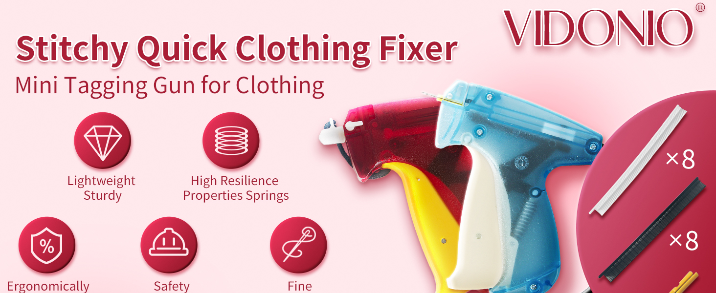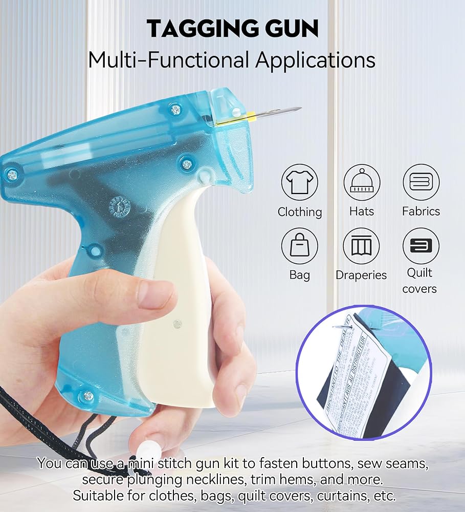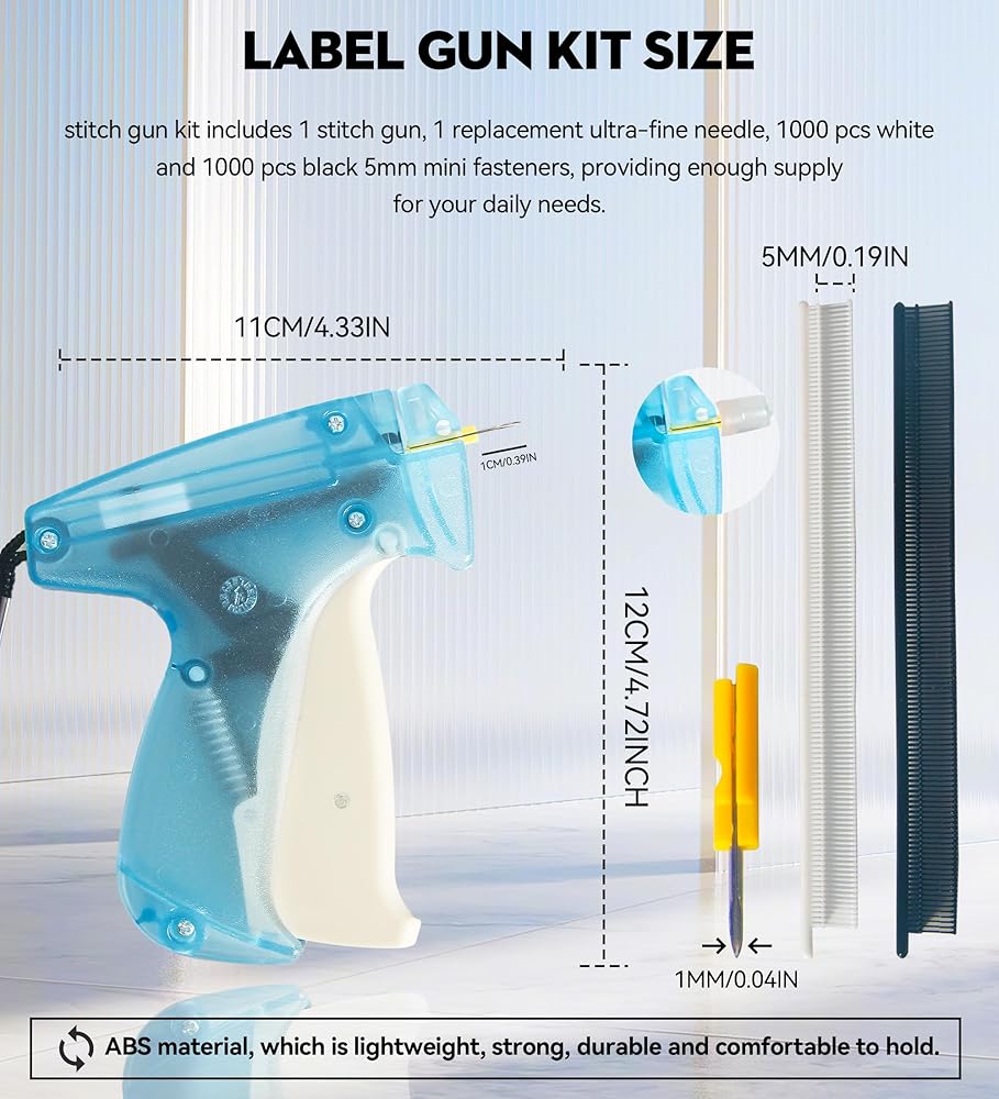 مواد عالية الجودة: مسدس الغرز الصغير مصنوع من البلاستيك الصلب الخفيف ولكنه قوي، ويمكن لمسدس الملابس للملابس أن يحل محل أشرطة القماش ودبابيس الأمان. أصغر إبرة لمسدس وضع العلامات الصغيرة مصنوعة من الفولاذ المقاوم للصدأ، ناعمة وحادة.
