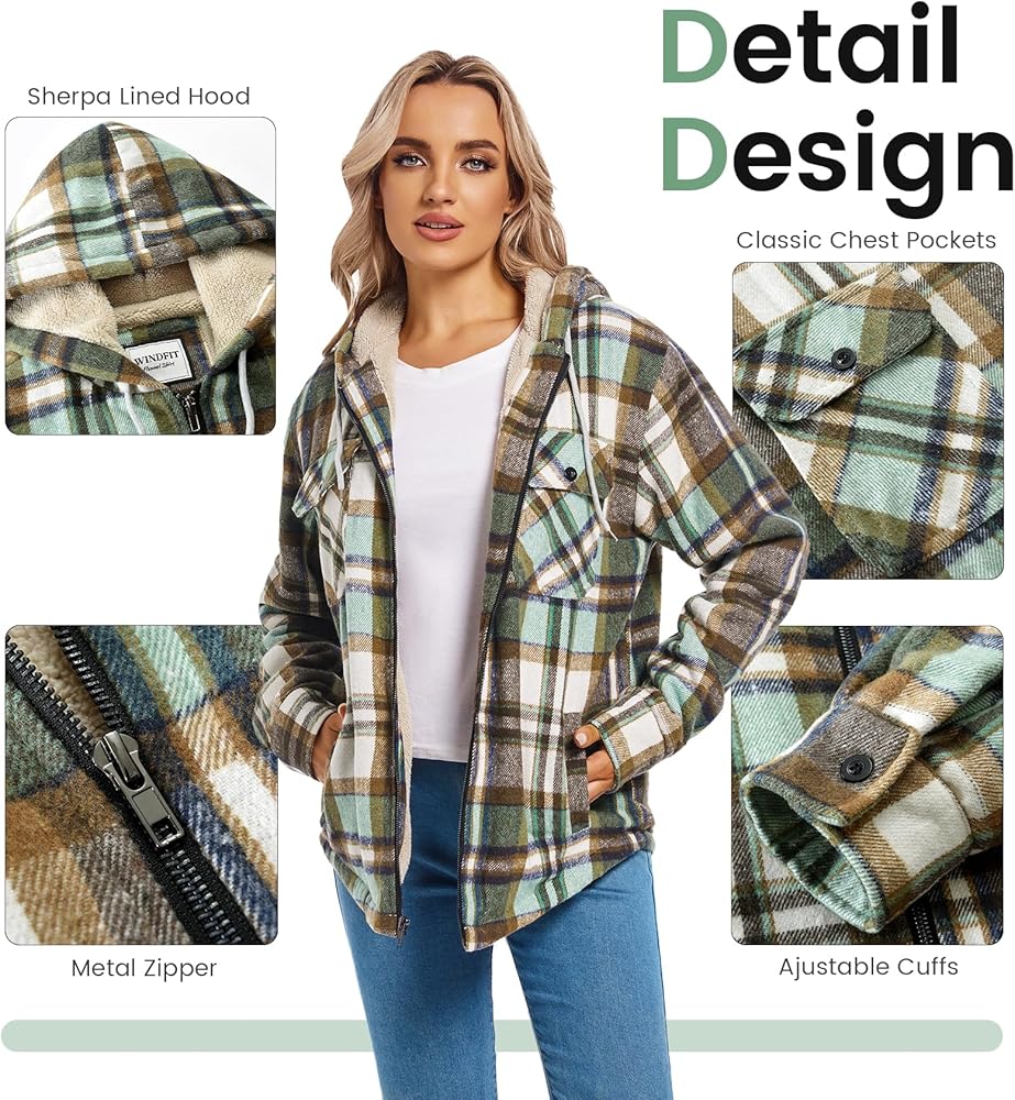 نسيج ناعم: هذا القميص النسائي المصنوع من صوف الشيربا المبطن بسحاب من الفلانيل مصنوع من نسيج مزيج القطن الناعم، مصقول للحصول على نعومة زبدية وللحصول على أقصى درجات الدفء.