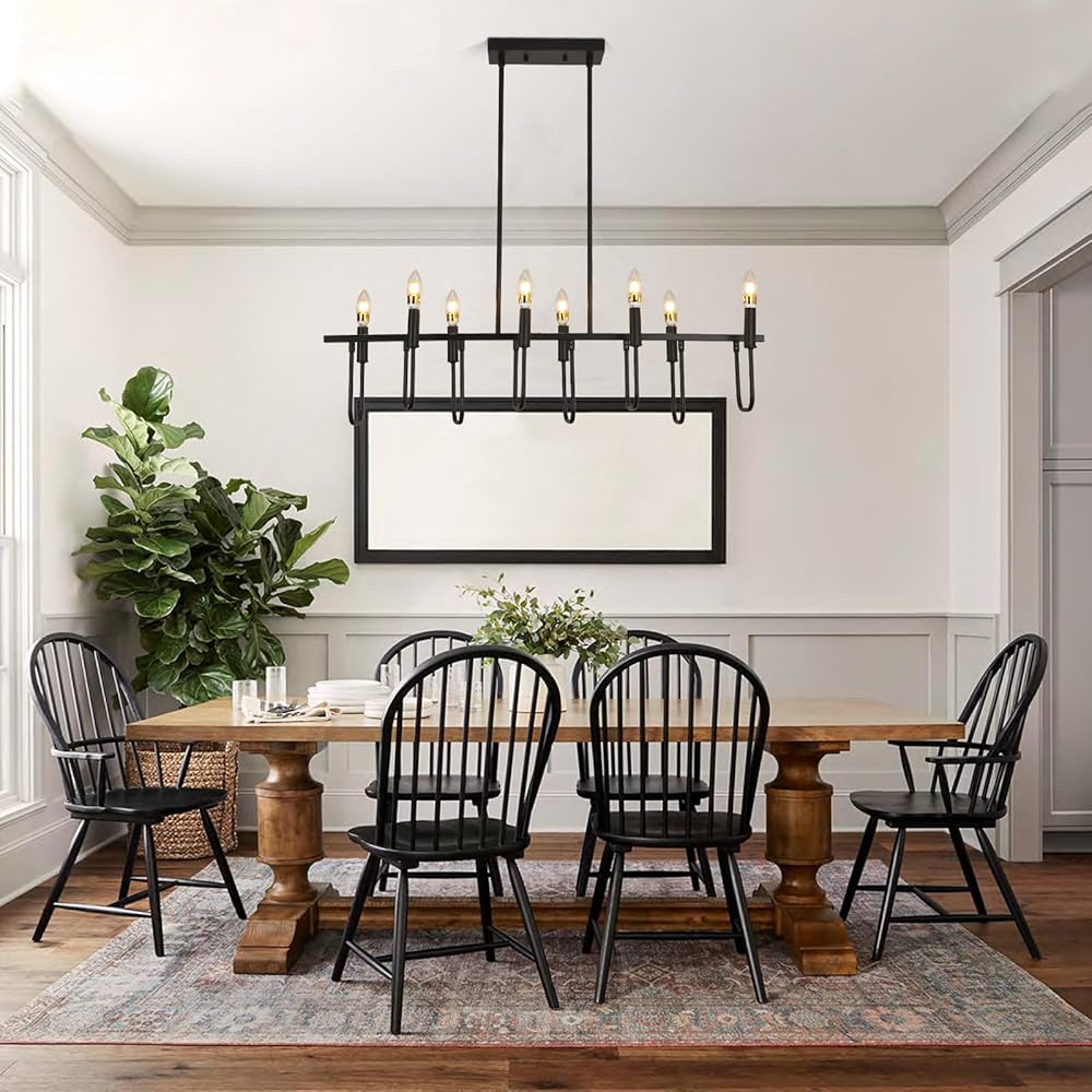 الثريا السوداء الحديثة مزرعة الثريات لغرفة الطعام 8 أضواء شمعة الثريات مستطيلة الخطي الثريا للمطبخ جزيرة الإضاءة غرفة الطعام تركيبات الإضاءة على الطاولة