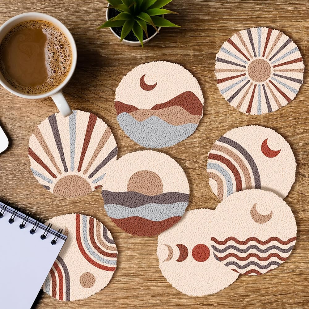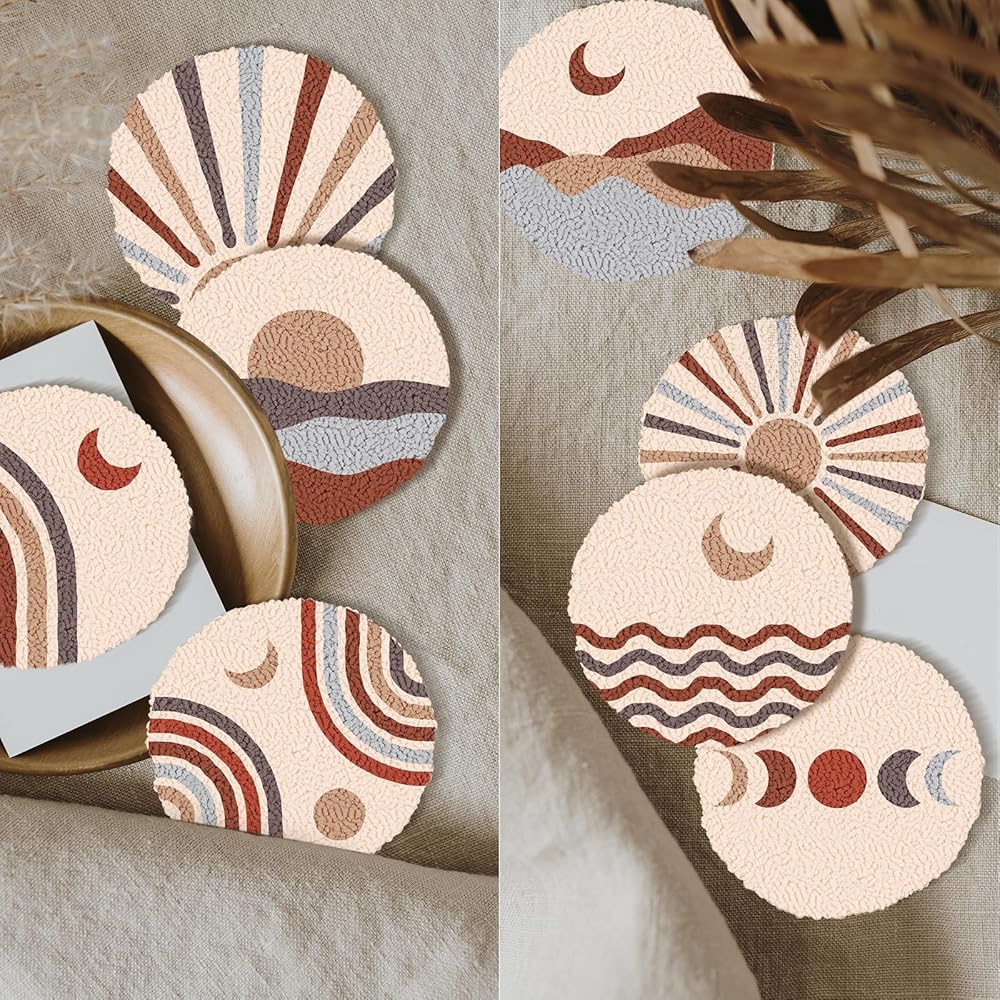 【Boho Punch needle coasters with 6 Patterns】The punch needle patterns was pre-printed on each cloth,embroidery kits for adults will provide great help to starters, These embroidery kit for beginners include 6 Patterns.The diameter is 12cm/4.72inch.A complete and rich combination makes it easy to operate, well fit for punch needle beginner. You can share your punch needle art carft with your friends.