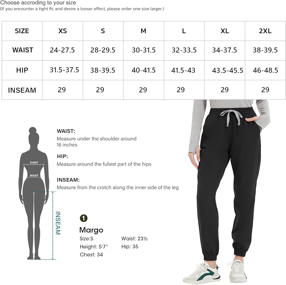 • SLIM FIT—Made specifically for healthcare, slim fit with a self-fabric elasticized waistband and ankle cuffs, drawstring adjustment, easy to deal with the challenges of the job, showing a professional style and comfortable experience.