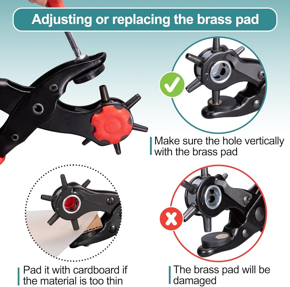رؤوس الثقب القابلة للتبديل: تشتمل أداة الثقب الجلدية هذه على مجموعة من أحجام رؤوس الثقب، مما يمنحك مرونة لا مثيل لها في أبعاد الثقب. سواء كنت تعمل على الأحزمة أو الحقائب أو الملابس أو ديكور المنزل، سيكون لديك رأس الثقب المناسب لهذه المهمة.